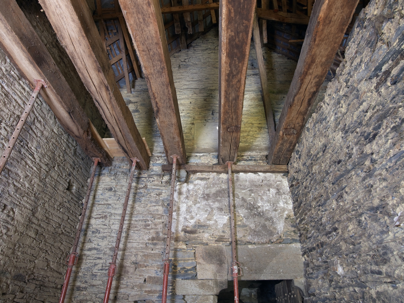 Manoir, rez-de-chaussée, entrée actuelle : empoutraison et linteau de la porte d'accès au cellier (état en 2014)Immatriculation