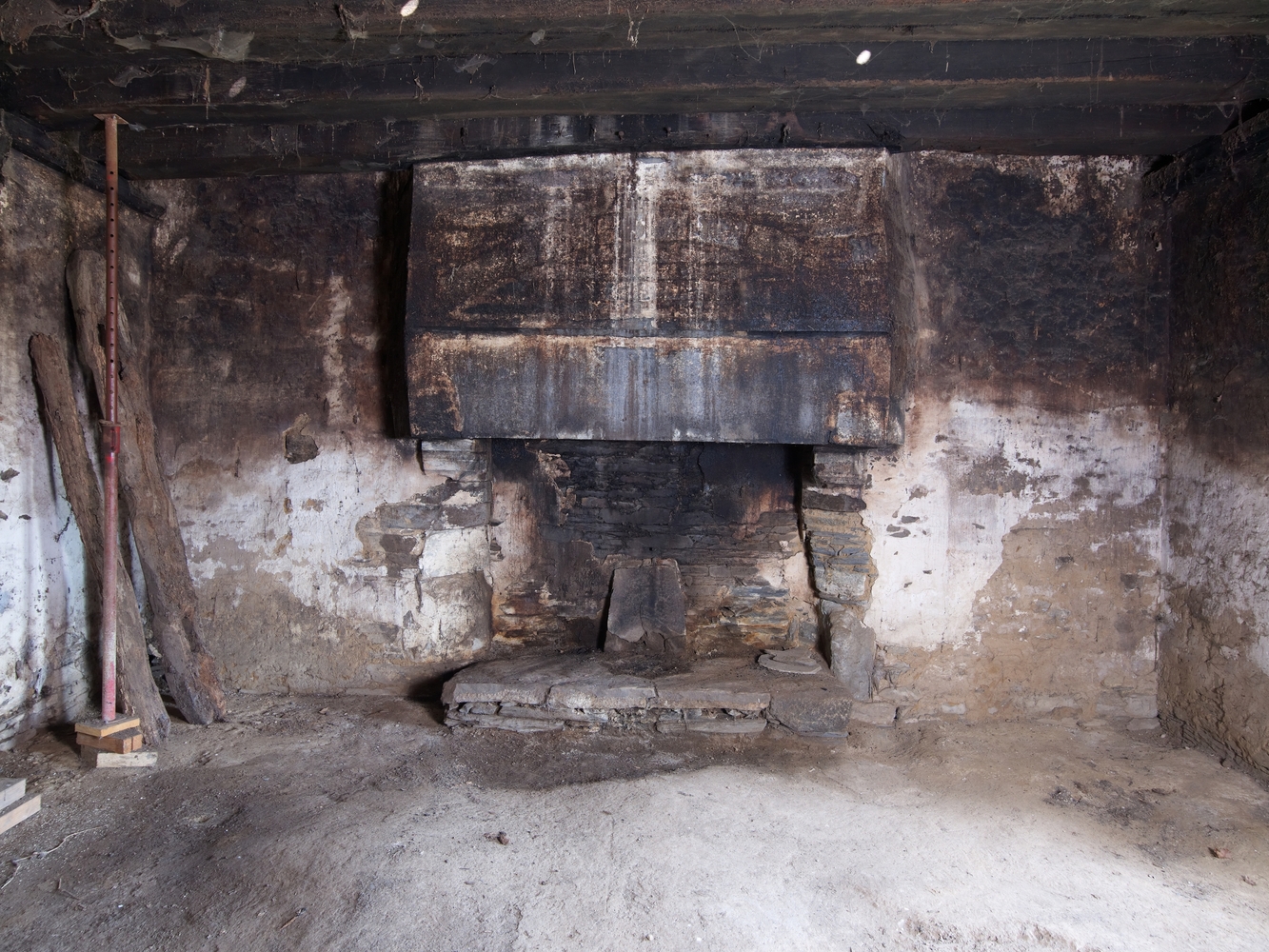Manoir, rez-de-chaussée, salle : la cheminée sur le mur nord (état en 2014)Immatriculation