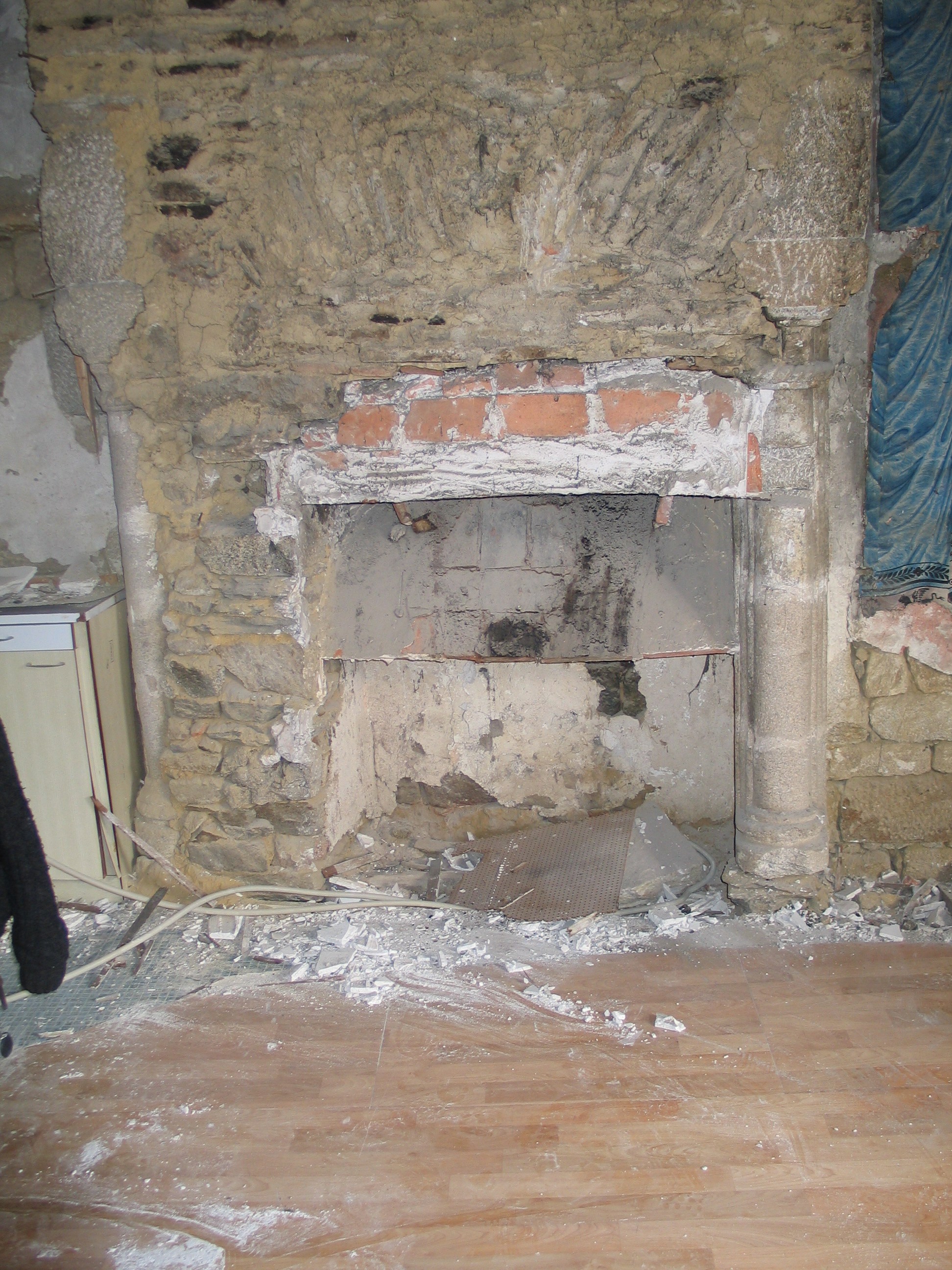 Premier étage, salle sud, papier peint en fausse tentureImmatriculation