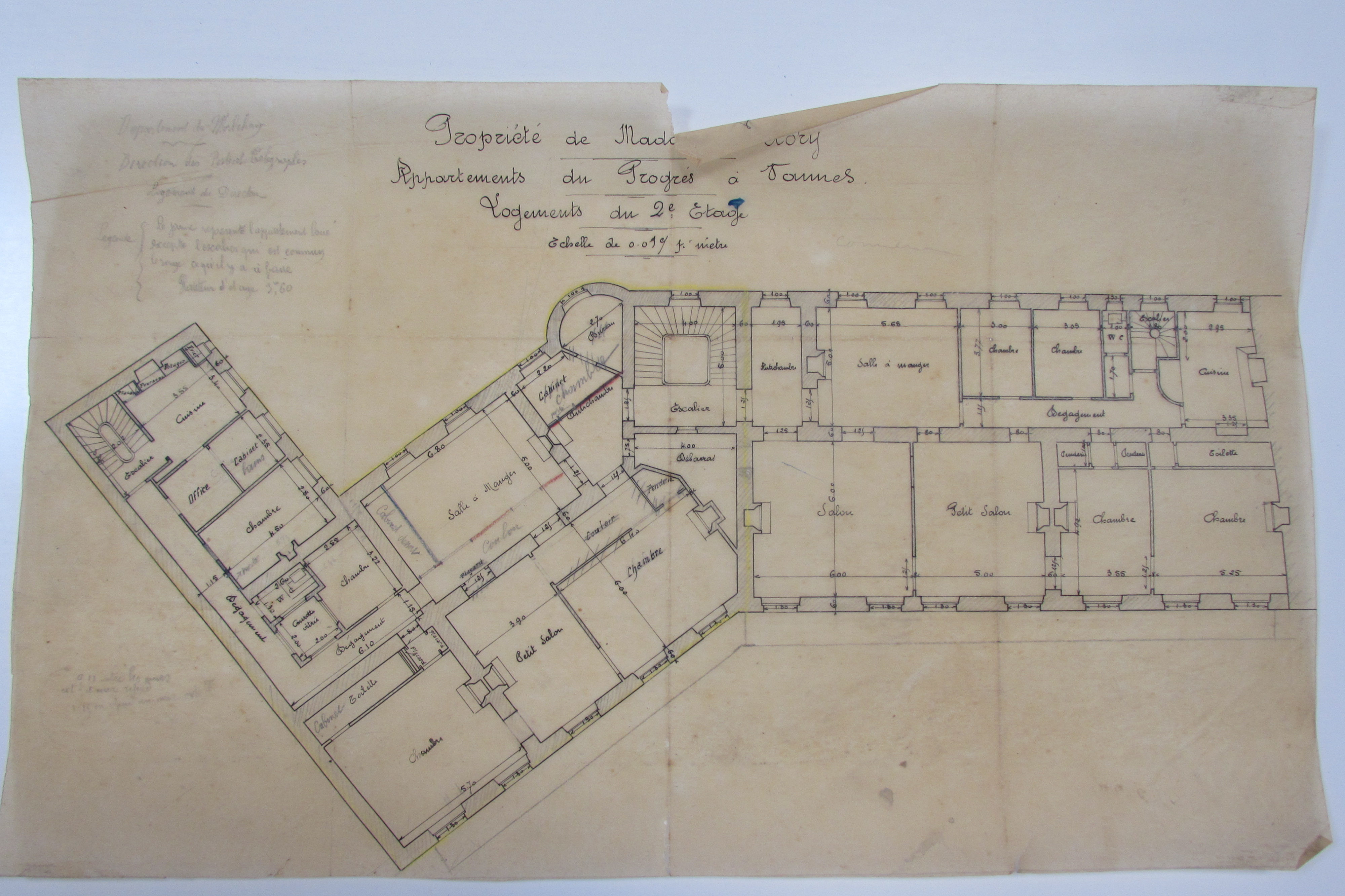 Appartements du Progrès à Vannes : logements du 2ème étage par J. Caubert de Cléry, 1912. AD Morbihan 149 J 308.Immatriculation
