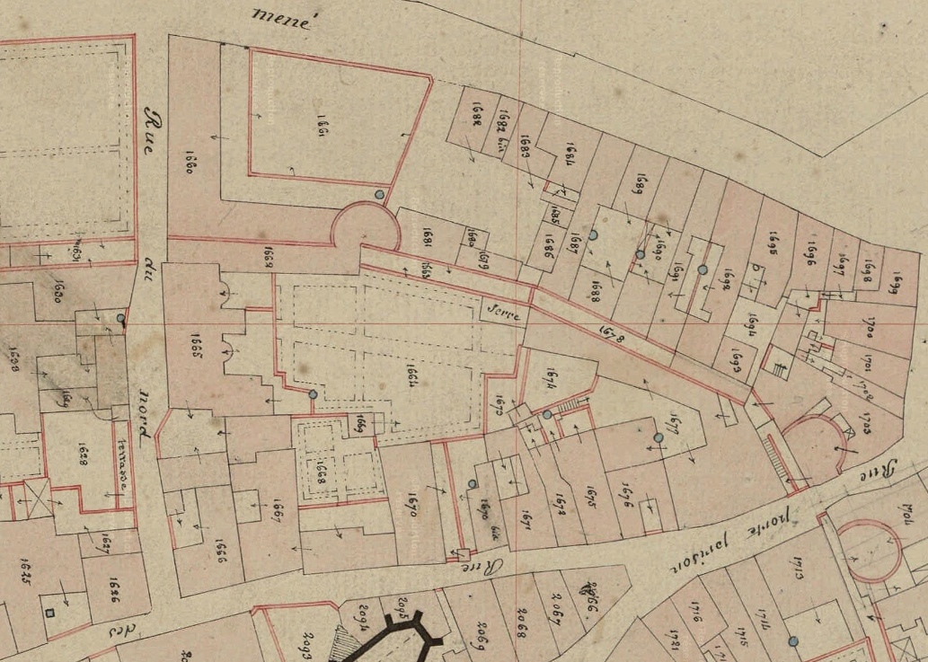 Extrait du plan cadastral de 1844, section K, 8e feuille. AD Morbihan 3 P 297/58.Immatriculation