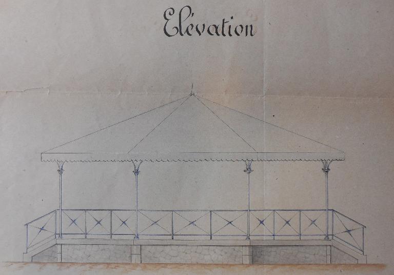 Croquis d'un kiosque pour musiciens : élévation, signé Ernest de Lamarzelle, 23 mai 1877, AM Vannes 52 FiImmatriculation