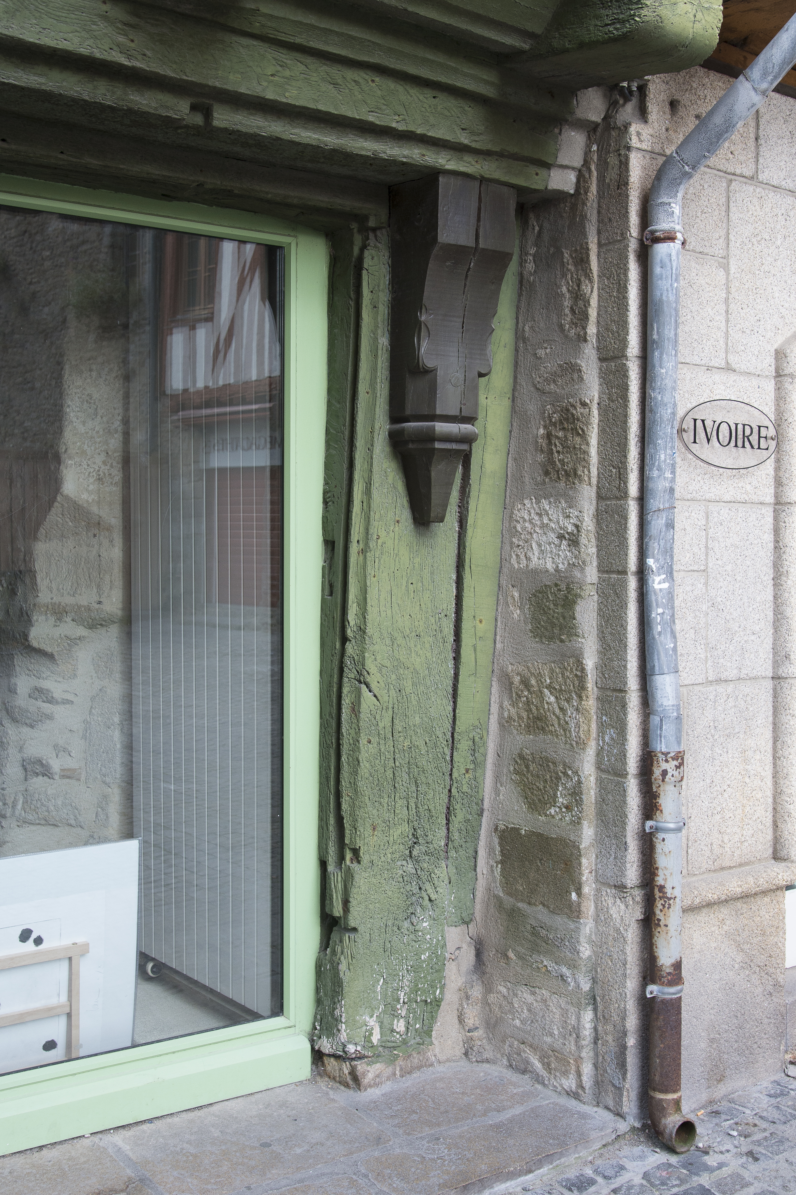 Façade sur rue, soubassement, poteau ancienImmatriculation