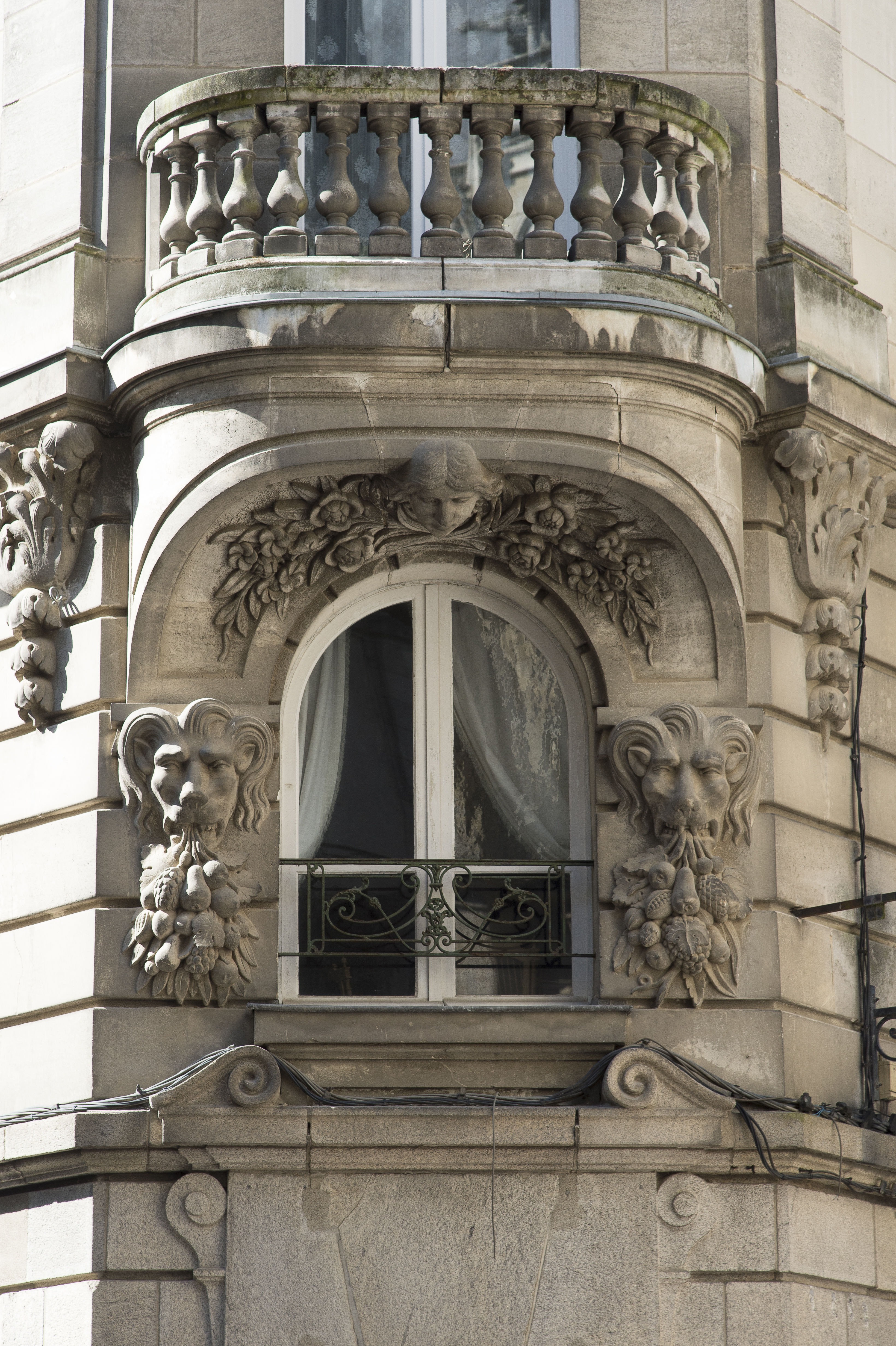 Façade sur rue, pan coupé, détail, support du balconImmatriculation