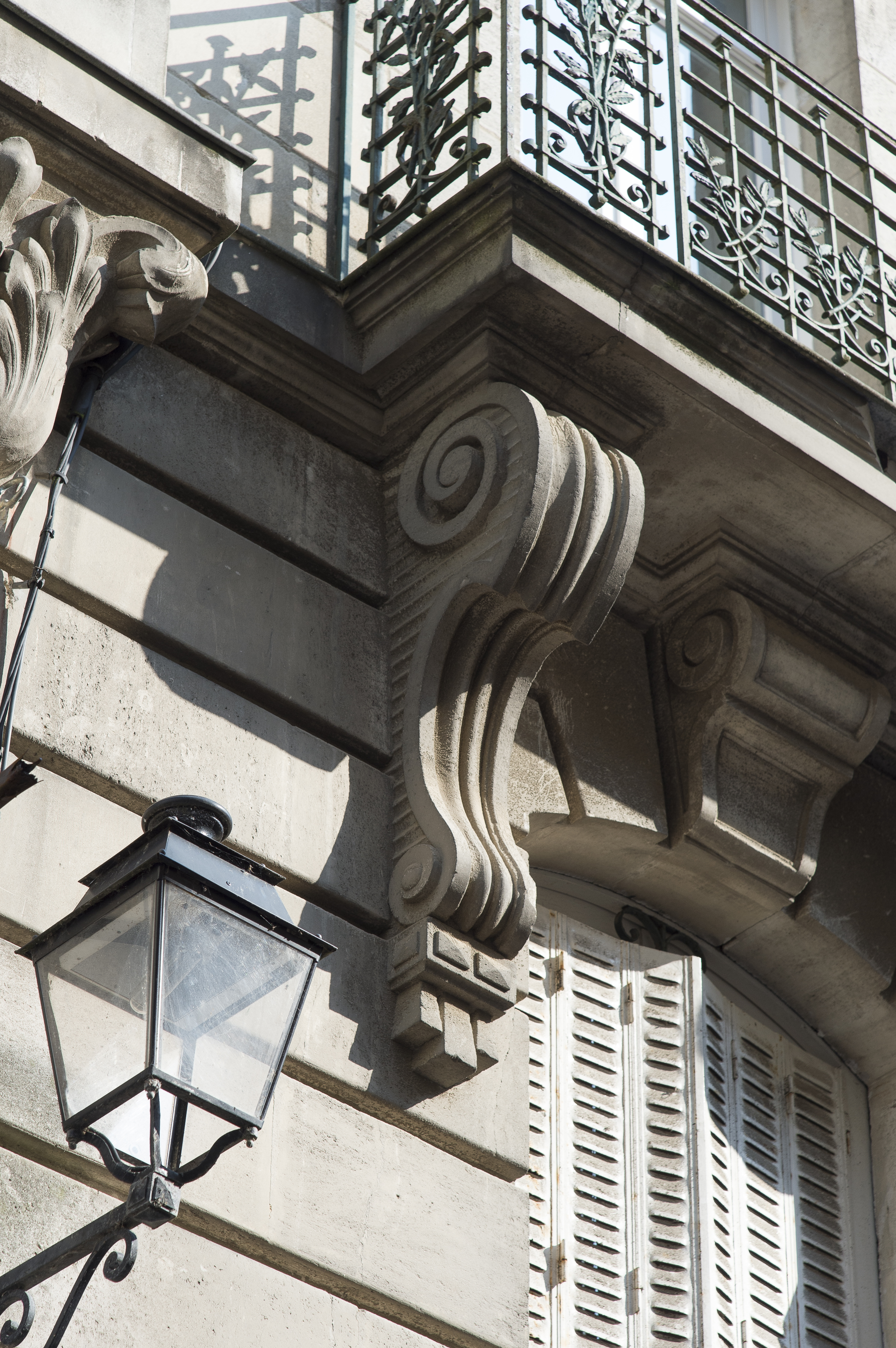 Façade nord, deuxième étage, balcon, consoleImmatriculation