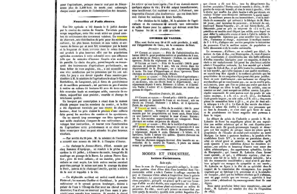 Extrait du journal Le Morbihan, le 27 Juillet 1844 (page 1)Immatriculation