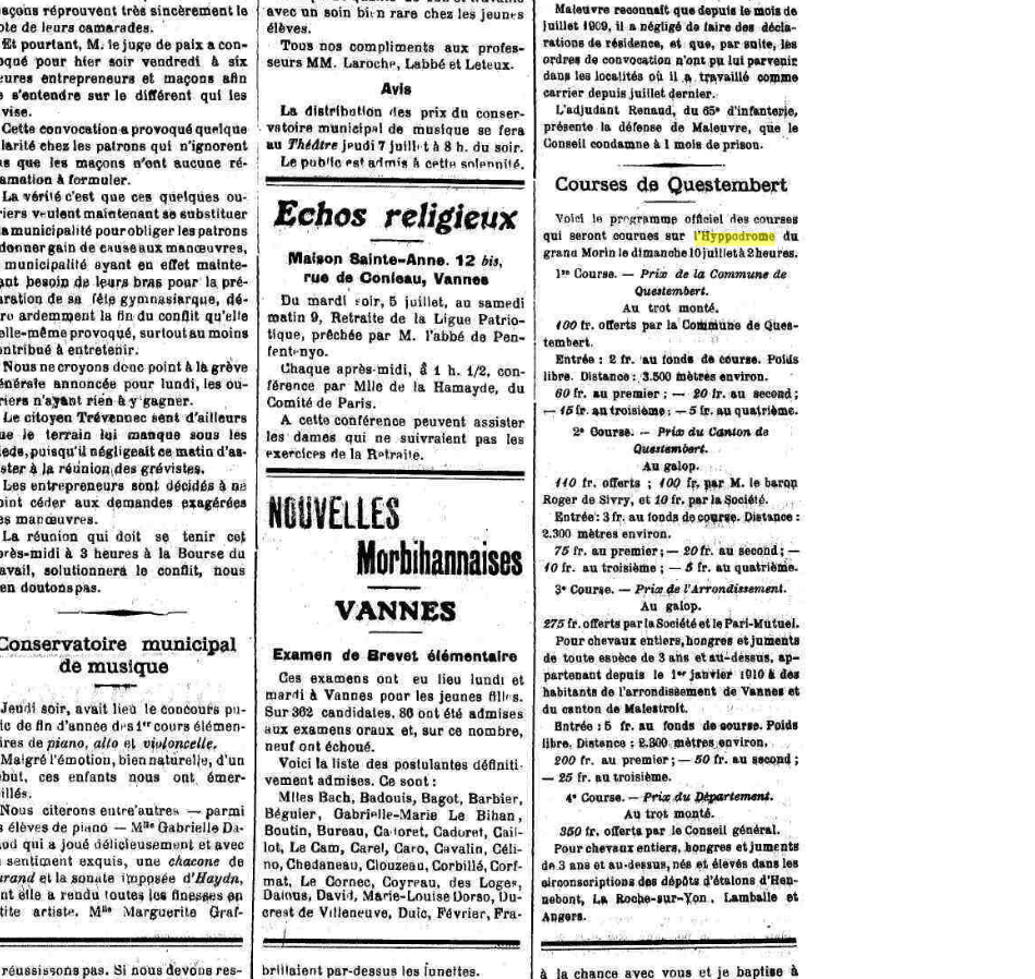 Courses de Questembert, extrait du journal l'Action bretonne du 2 Juillet 1910Immatriculation