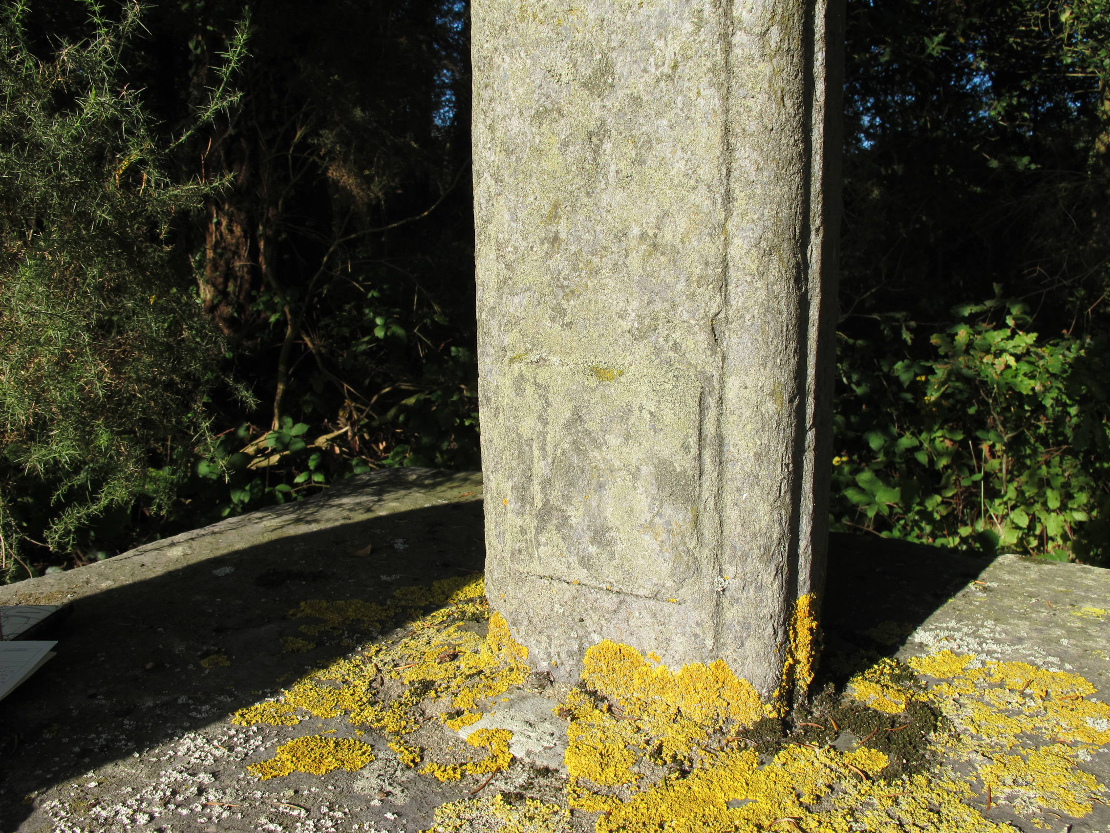 Croix de chemin : l'angle du fût est mouluré en quart de rond (état en 2014)Immatriculation