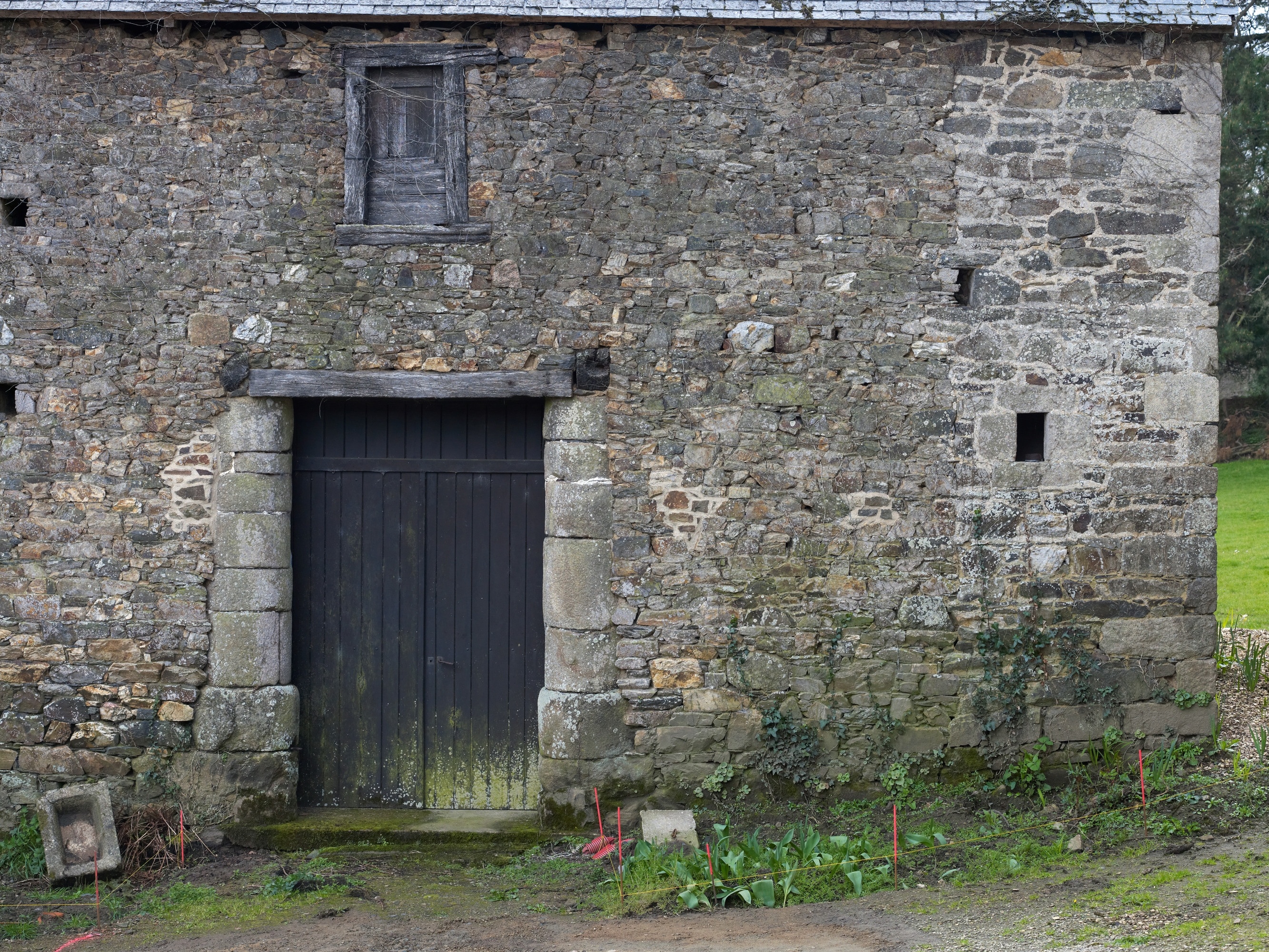 Dépendance bordant le côté nord de la cour. Détail d'une porte dont les piédroits sont montés avec des élements de colonnesImmatriculation