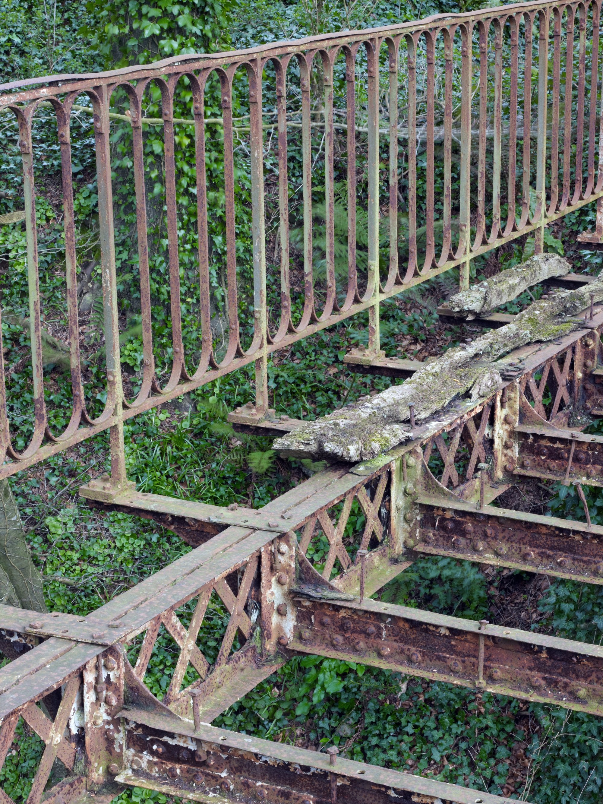 Passerelle métallique. Détail du parapet fixé à la poutre en treillisImmatriculation