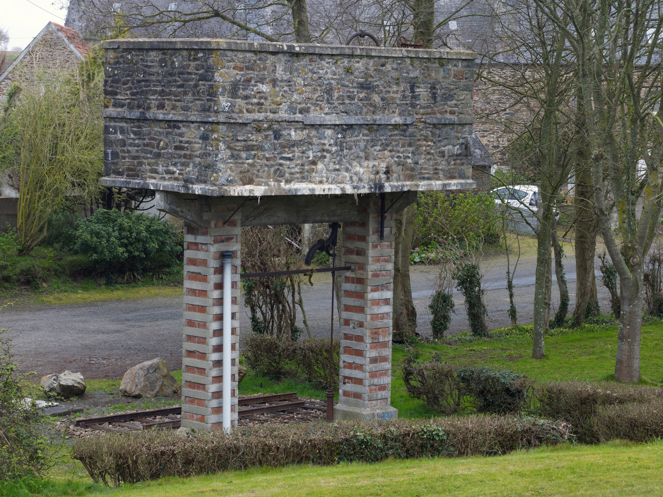 Minihy-Tréguier. Réservoir d'eau de Langazou situé sur la ligne de chemin de fer Plouëc-Tréguier. Vue généraleImmatriculation