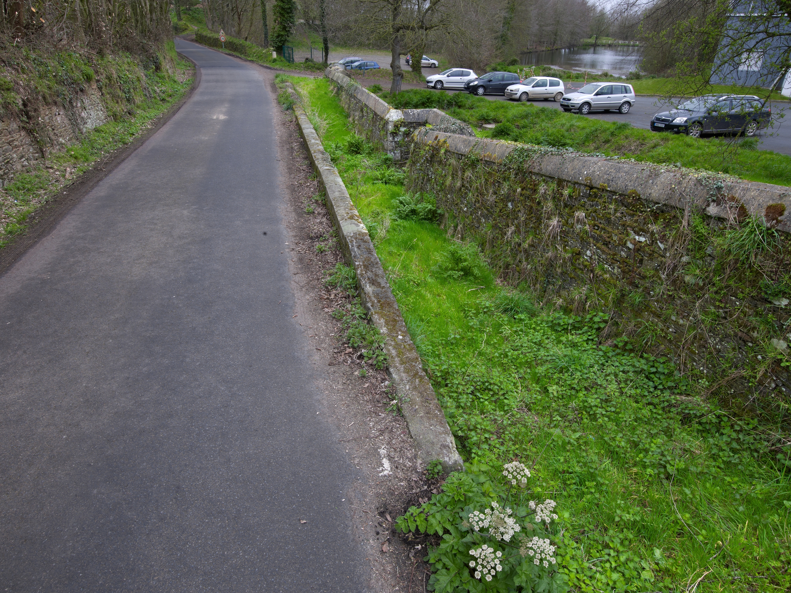 Mur de clôture du parc à l'ouest du château avec encoche pour la fontaine et rampe d'accès. Vue générale sudImmatriculation