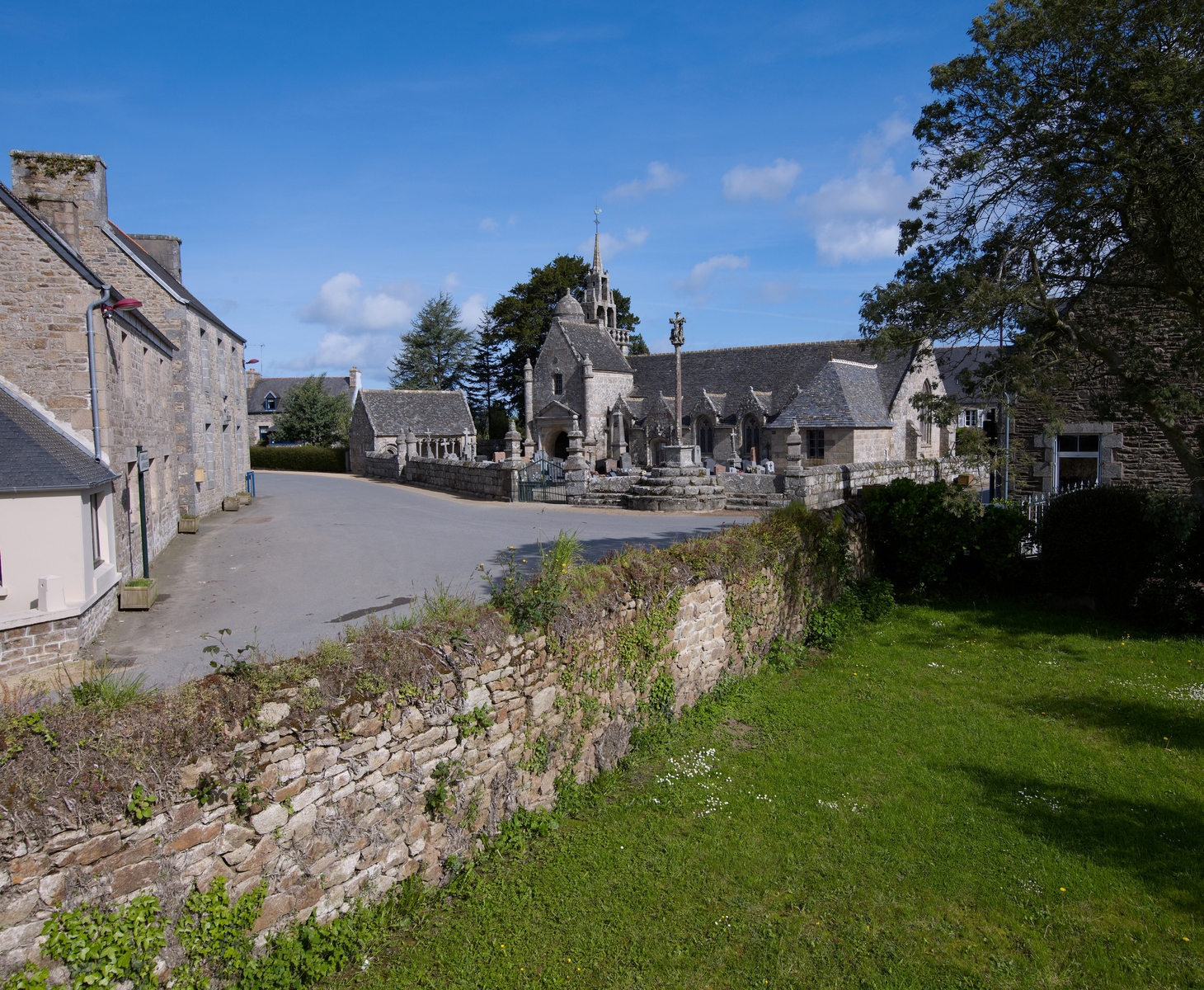 Plouzélambre, le bourg : vue générale de l'enclos paroissial depuis le sud-estImmatriculation