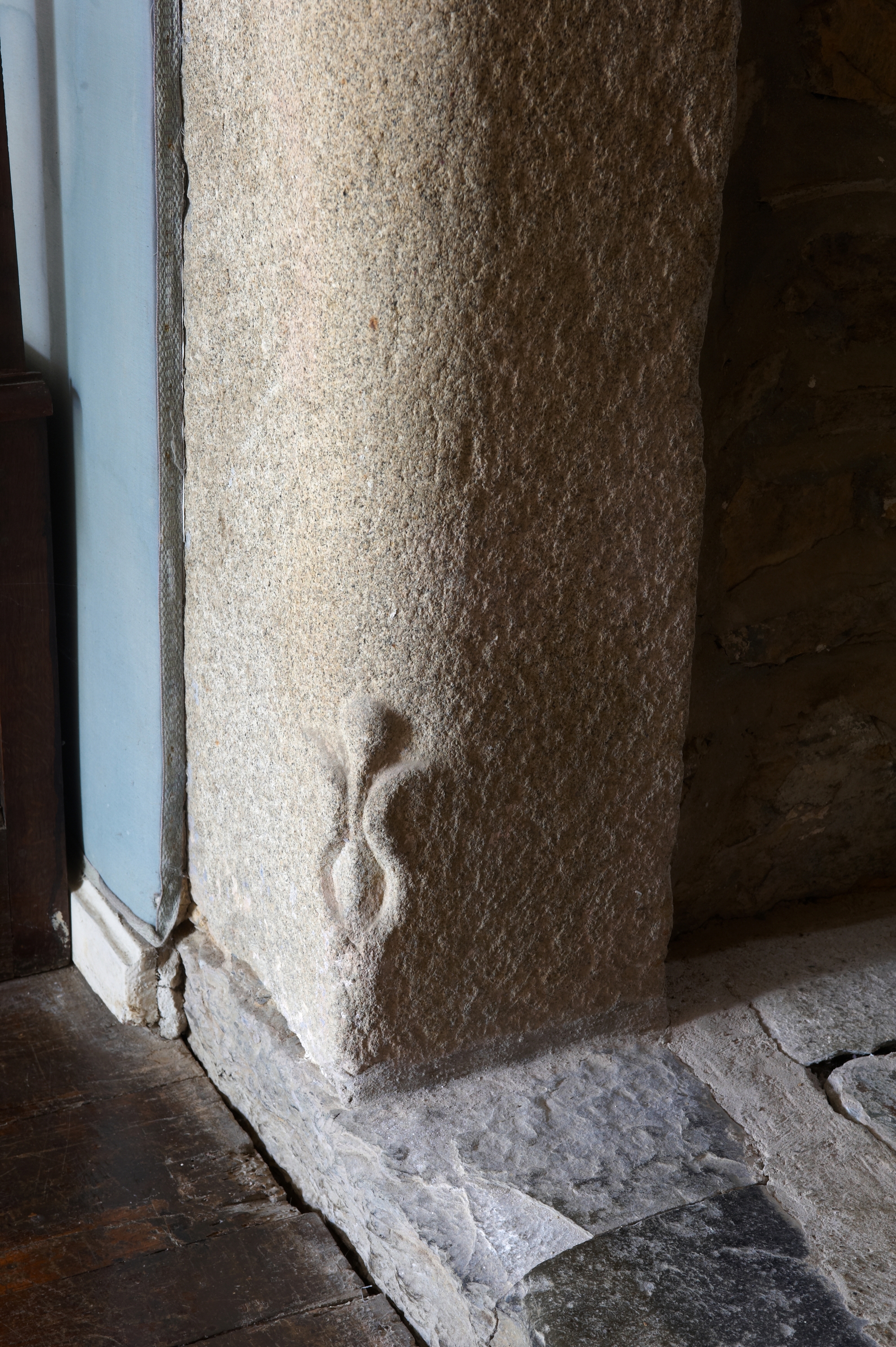 Château. Porte ouvrant sur l'ancienne cuisine aujourd'hui à usage de bureau. Détail de la base d'un piédroitImmatriculation