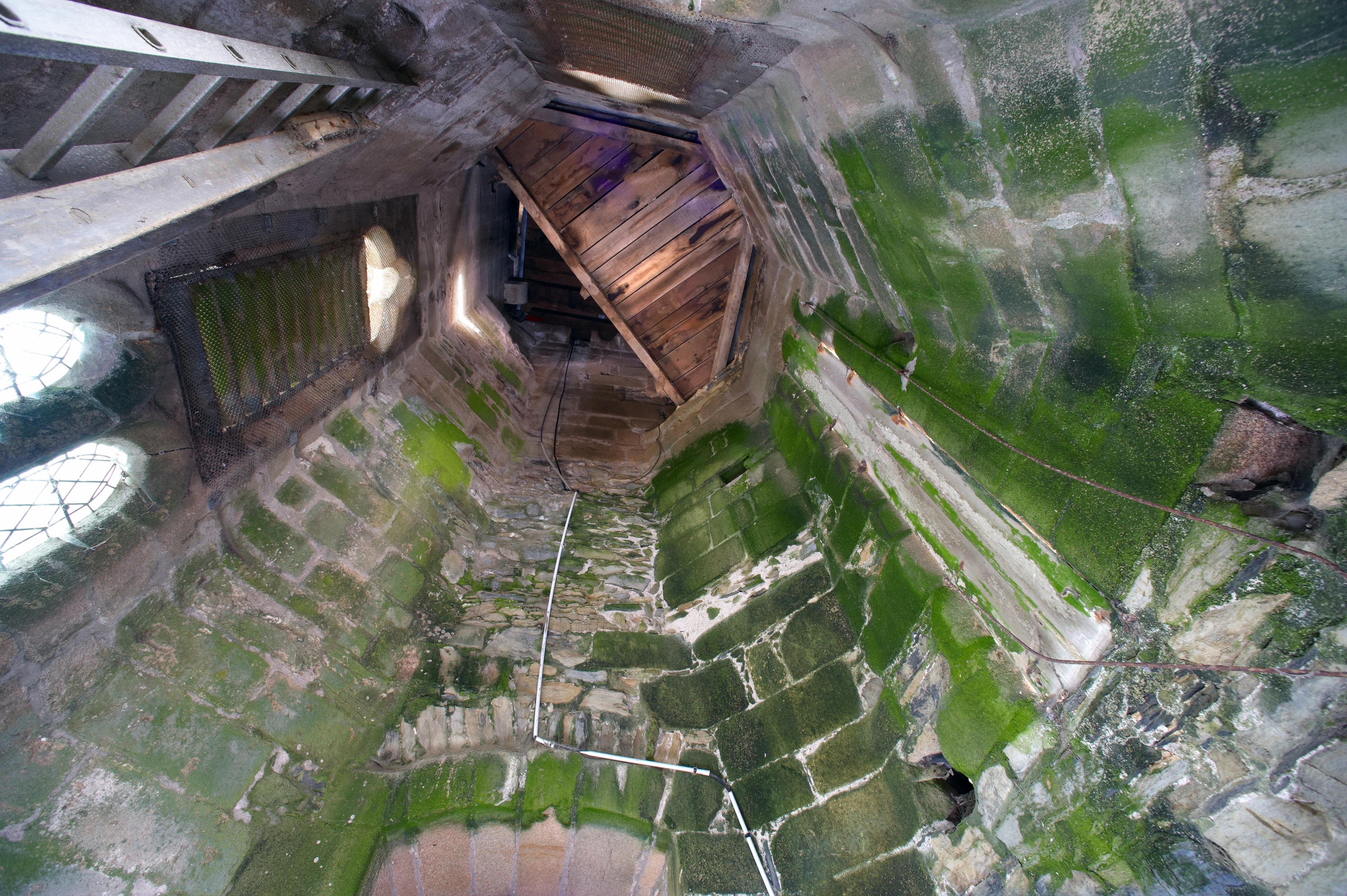 Tour sud-ouest, pièce de l'étage, vue vers le haut du clocher.Immatriculation