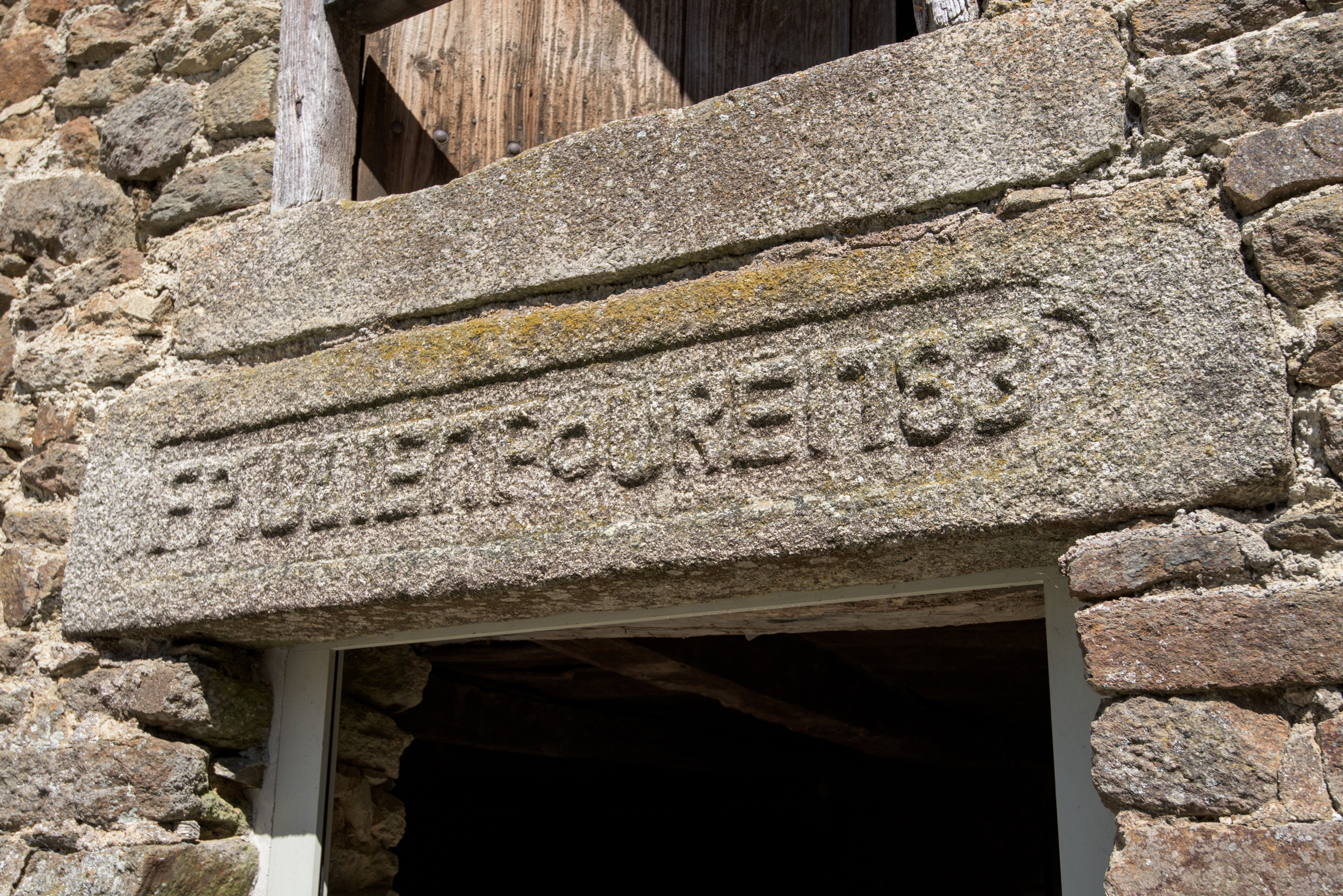 Linteau historié probablement remployé sur la dépendanceImmatriculation