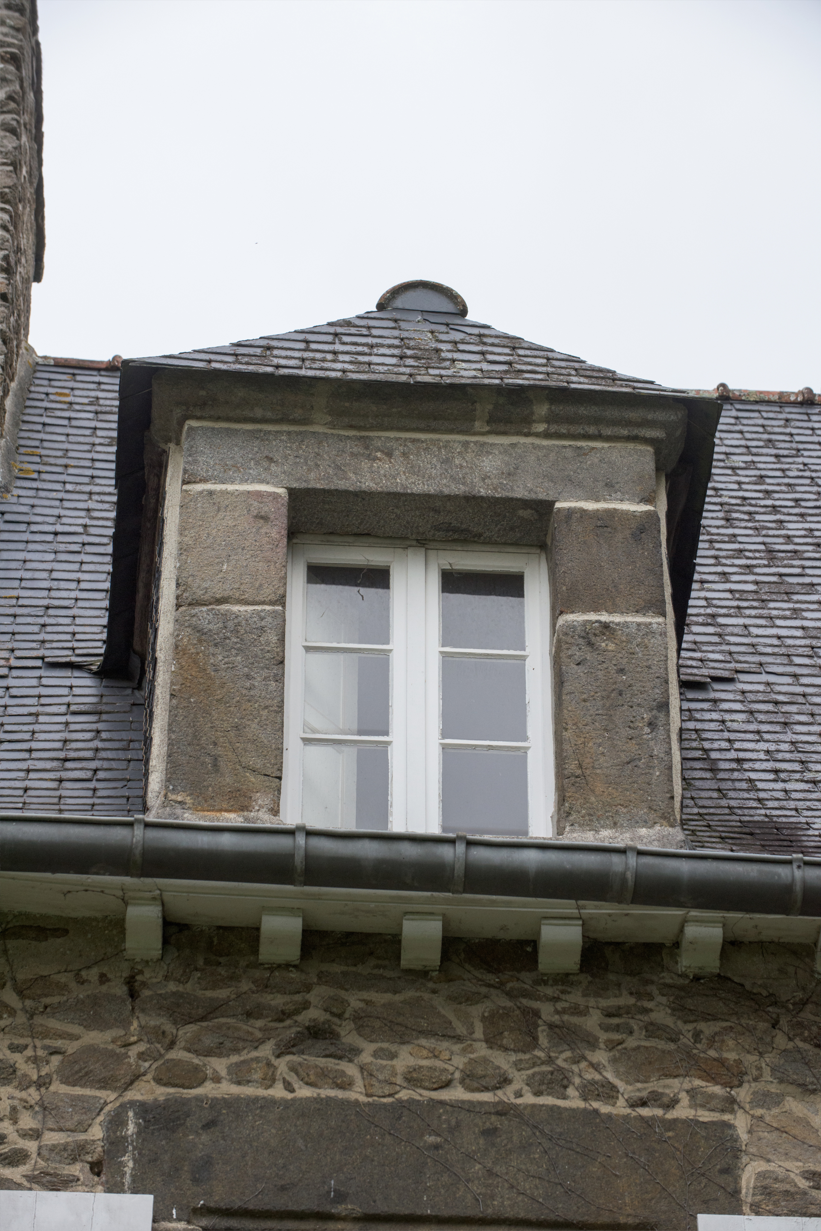 Détail d'une lucarne en pierre, façade sudImmatriculation