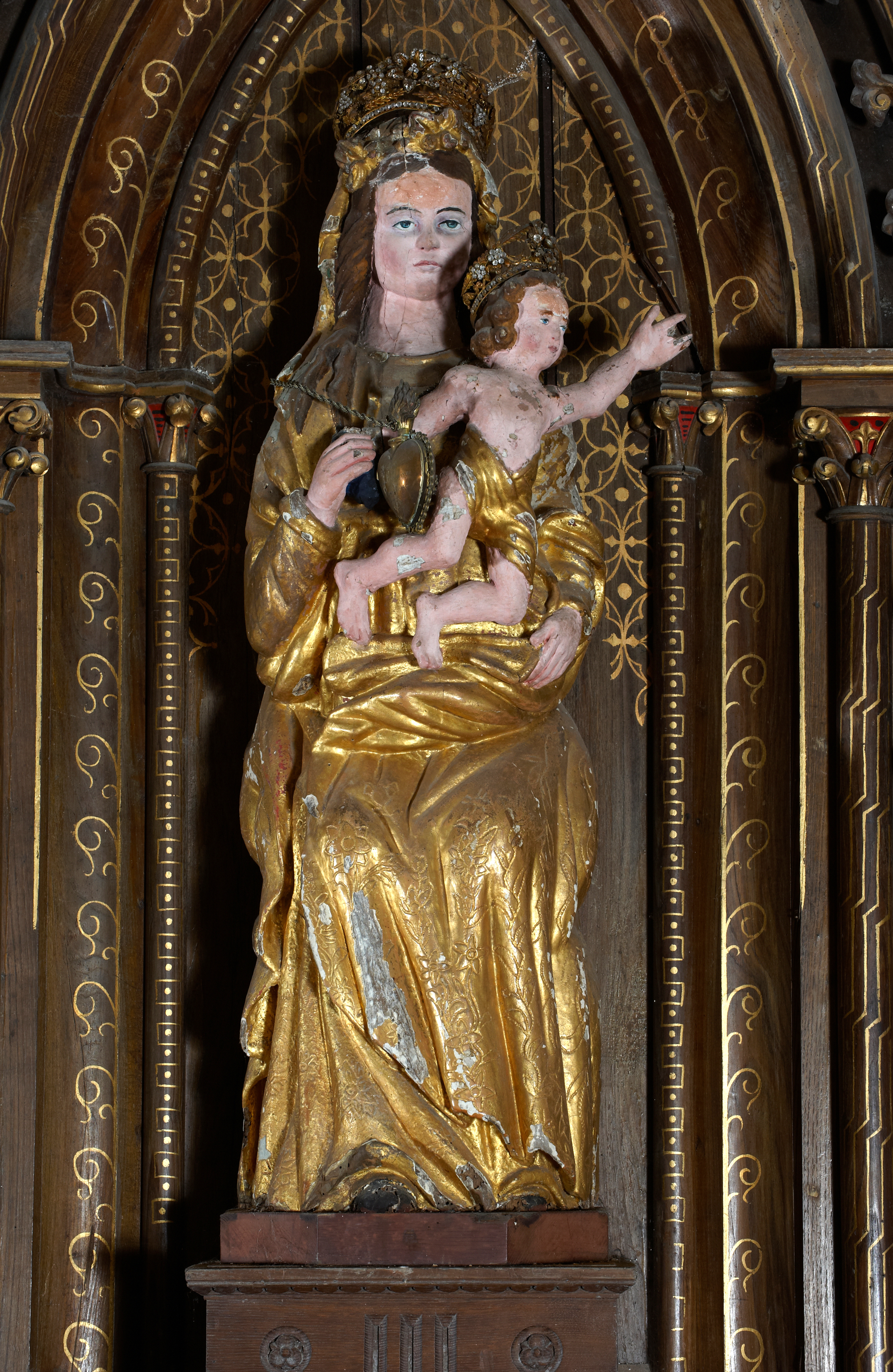 Rospez, le bourg : église paroissiale, détail de la statue de Notre-Dame de Grâce, probablement datable de la première moitié du 17e siècleImmatriculation