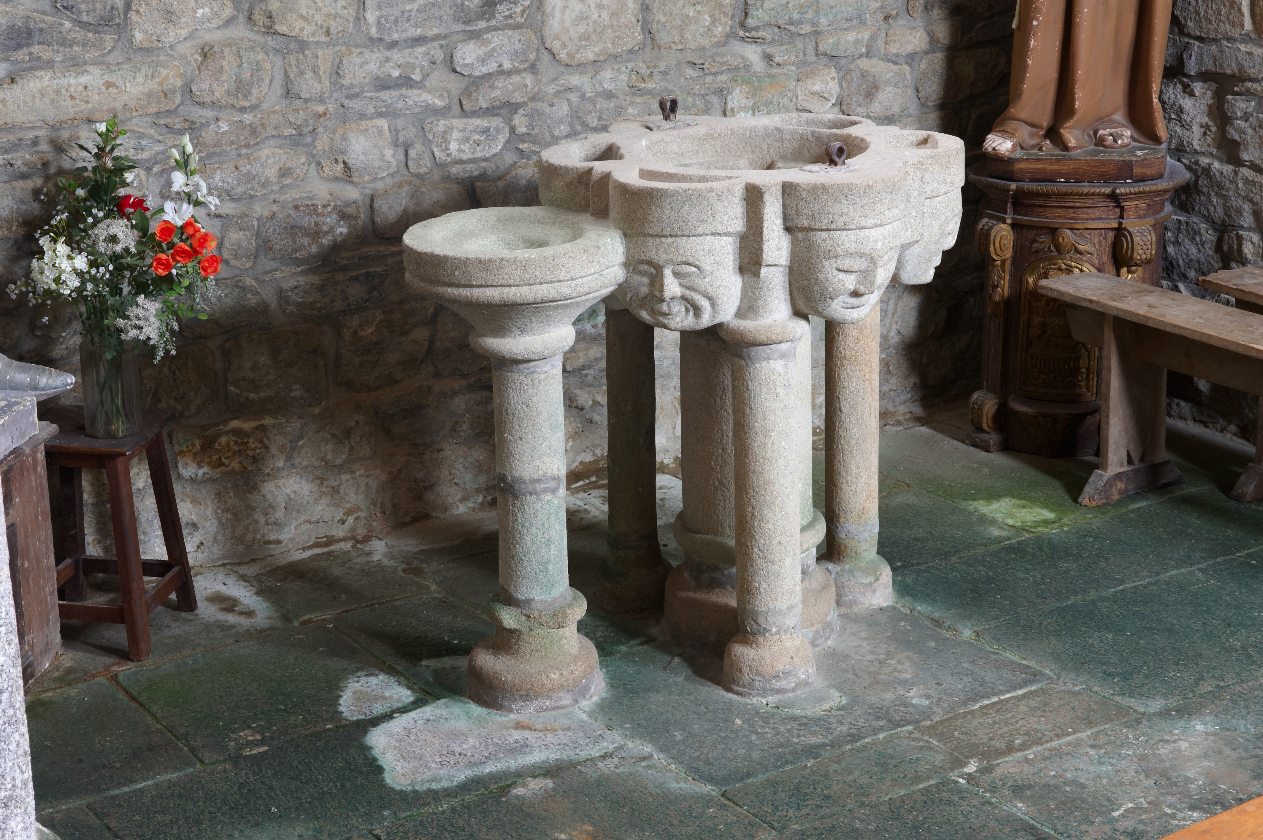 Rospez, le bourg : église paroissiale, ancien baptistère médiéval dont la cuve est sculptée de plusieurs visagesImmatriculation