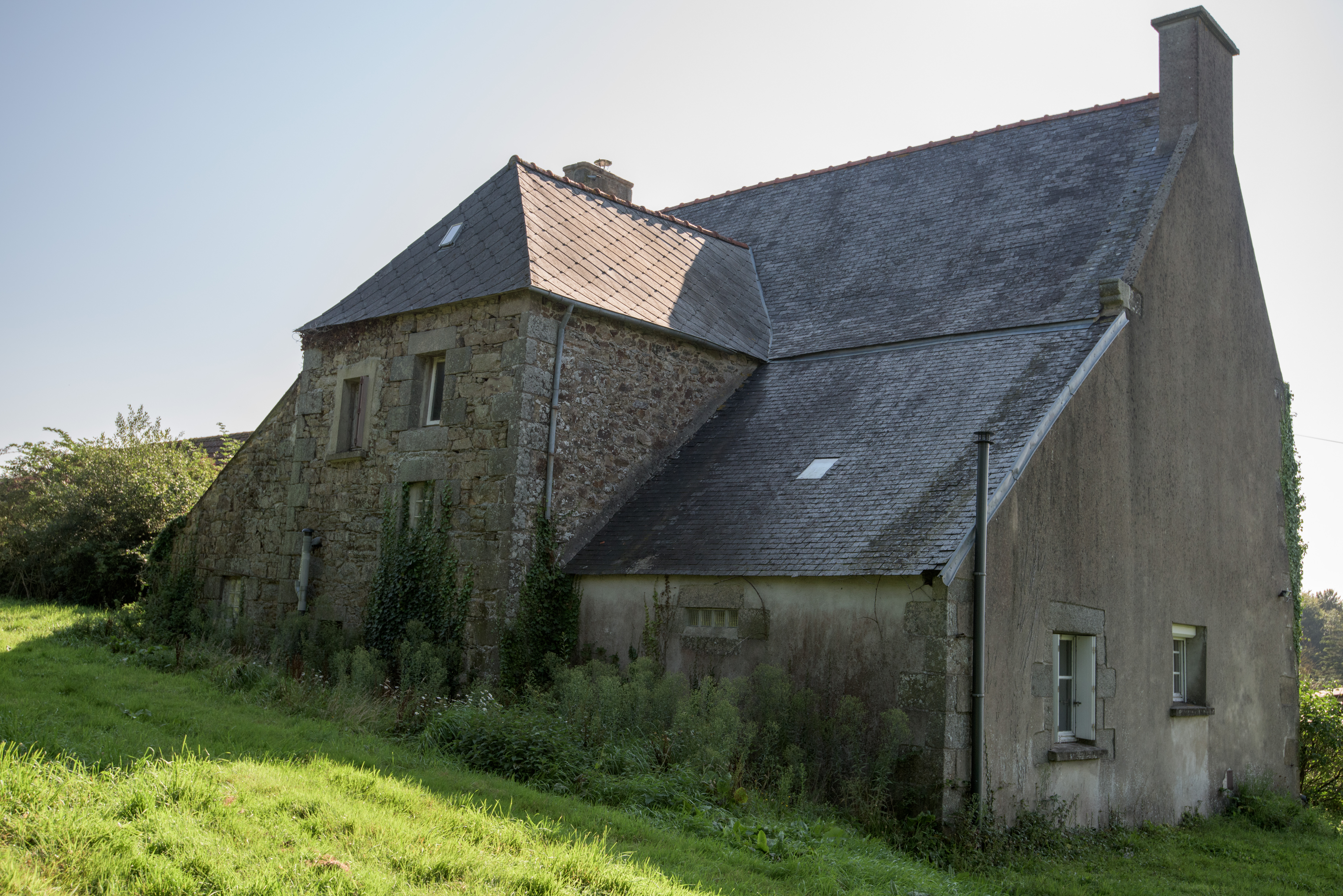 Rospez, Keranfeuillen : logis de ferme, élévation postérieure, vue du logis depuis le nord-ouest. On distingue le pavillon d'escalier et l'un des appentis plus tardifsImmatriculation