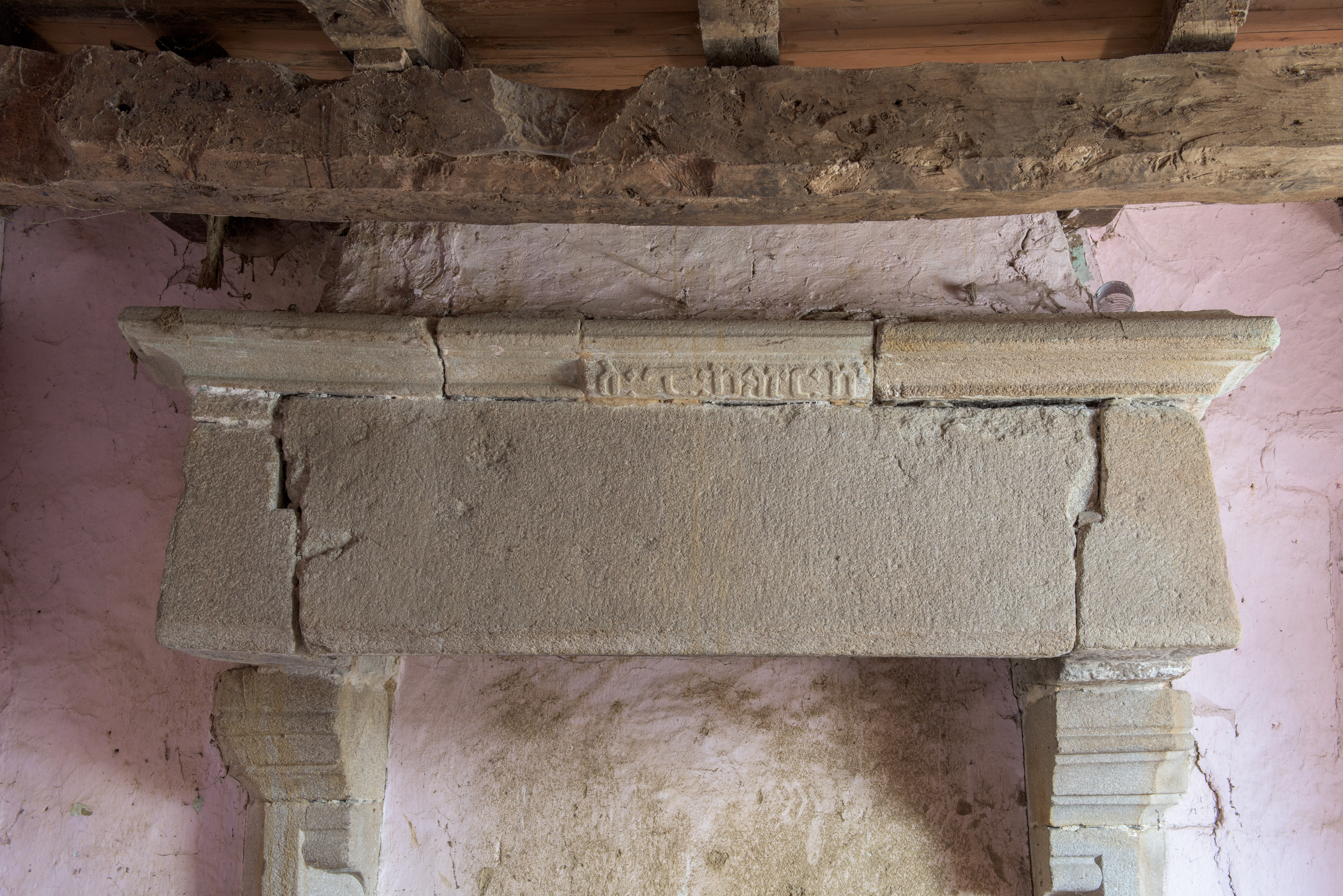 Rospez, Porz ar Lann : manoir devenu ferme, étage, cheminée, détail du manteauImmatriculation