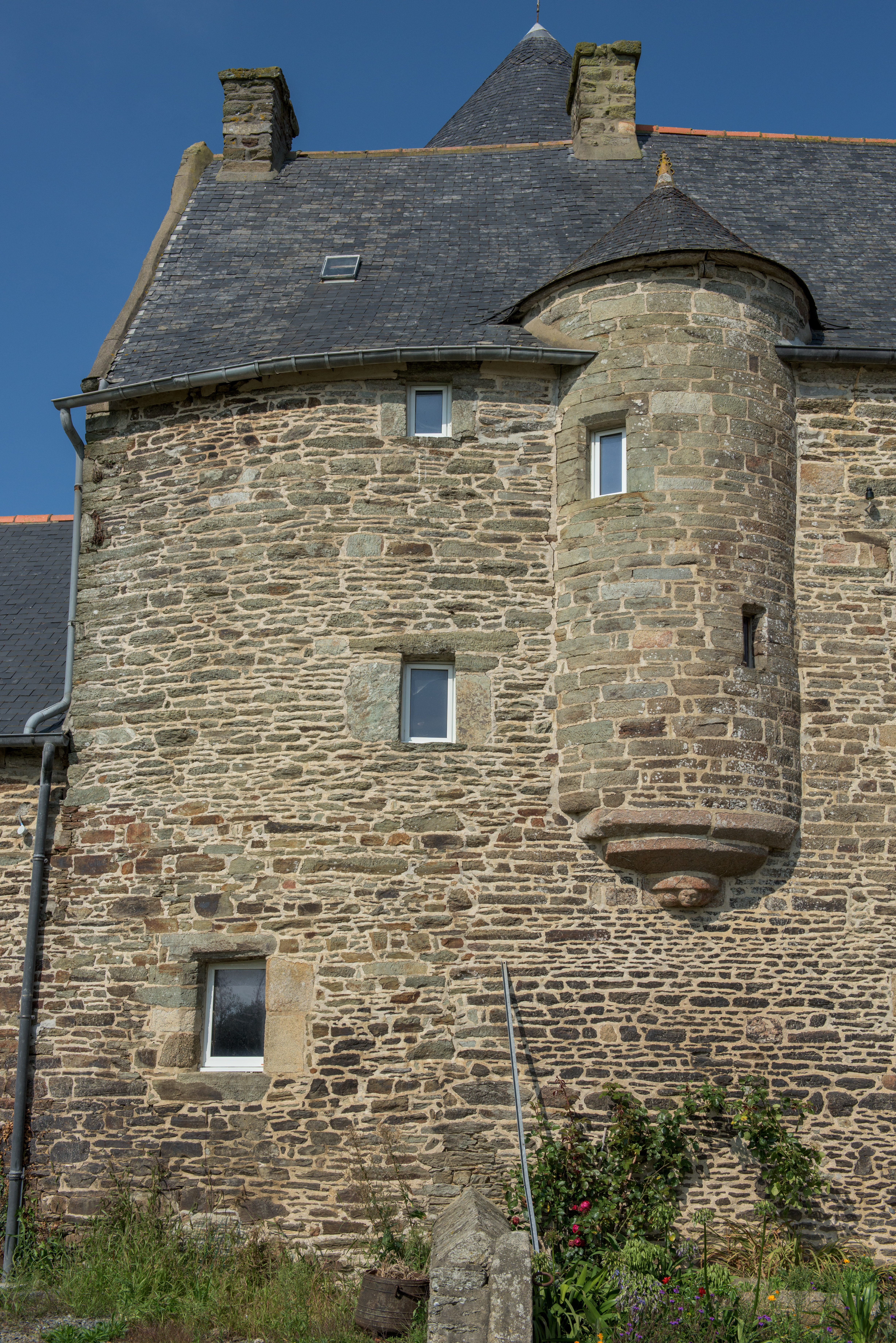 Rospez, manoir de Squivit : élévation sud, logis manorial, tour antérieure en demi-hors-oeuvre accueillant l'escalier en vis secondaireImmatriculation