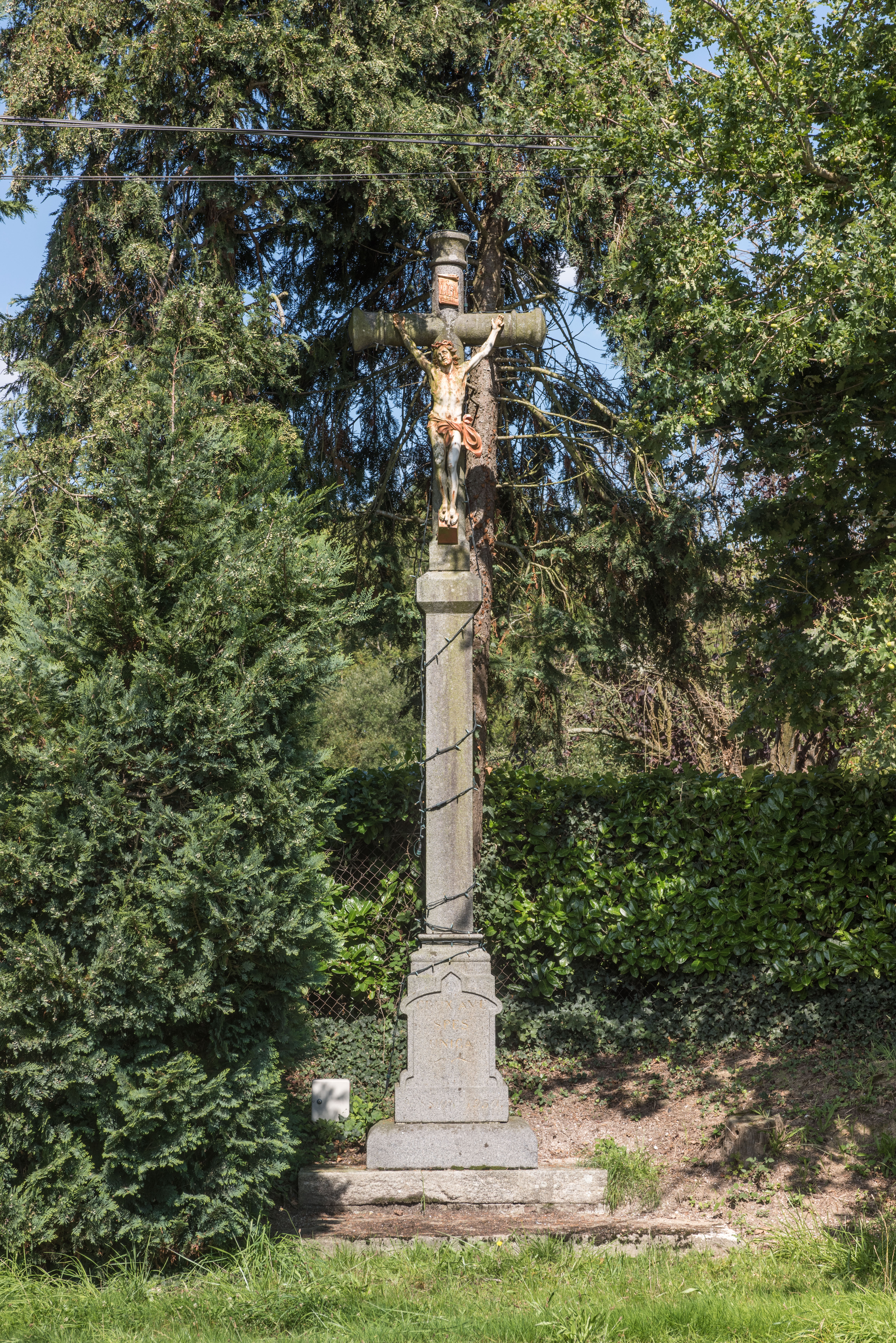 5) Vue de situation, croix de mission du 20e siècle, croisement route de la Bourgaudière et route de PleslinImmatriculation