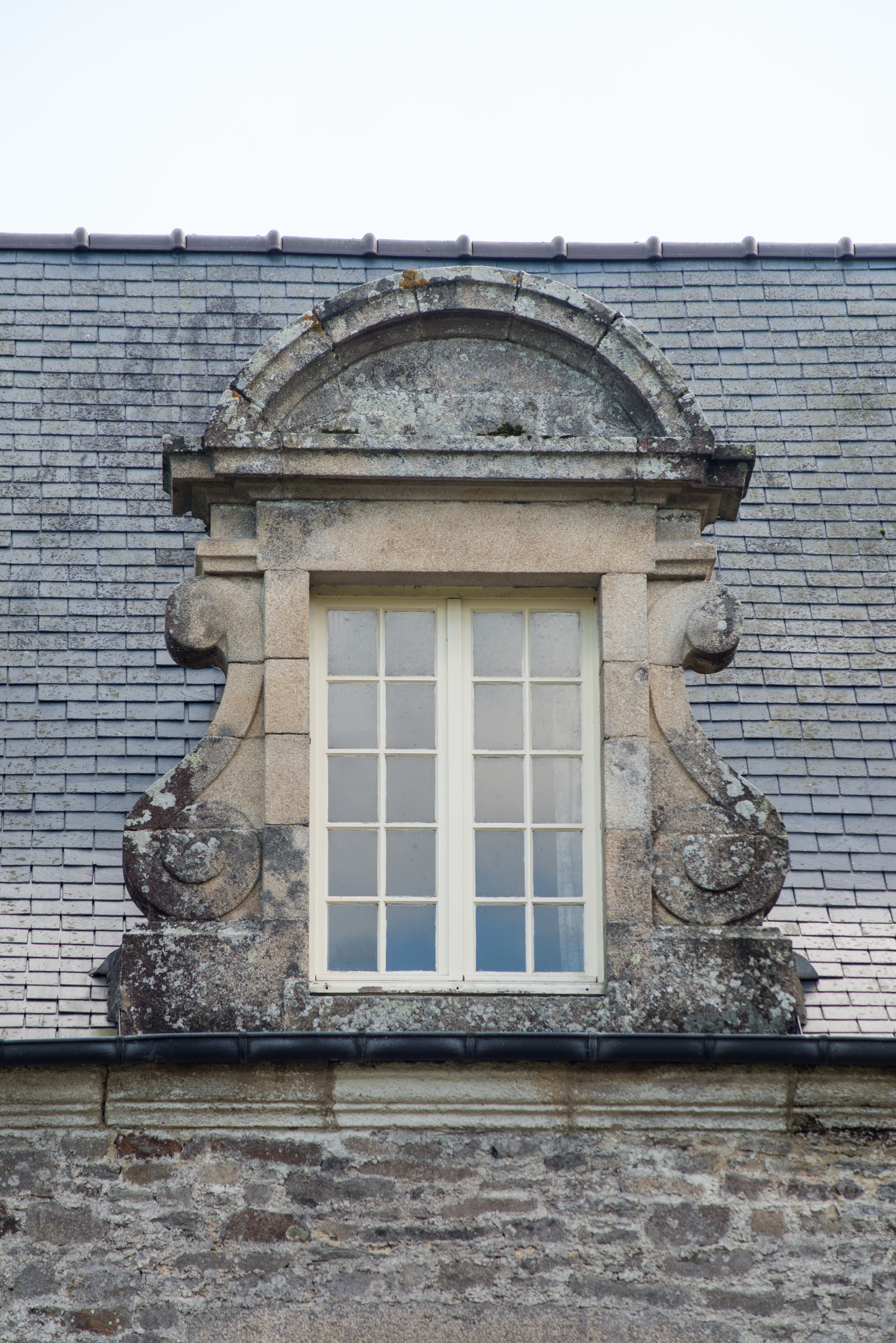 Détail d'une lucarne à fronton circulaire du châteauImmatriculation