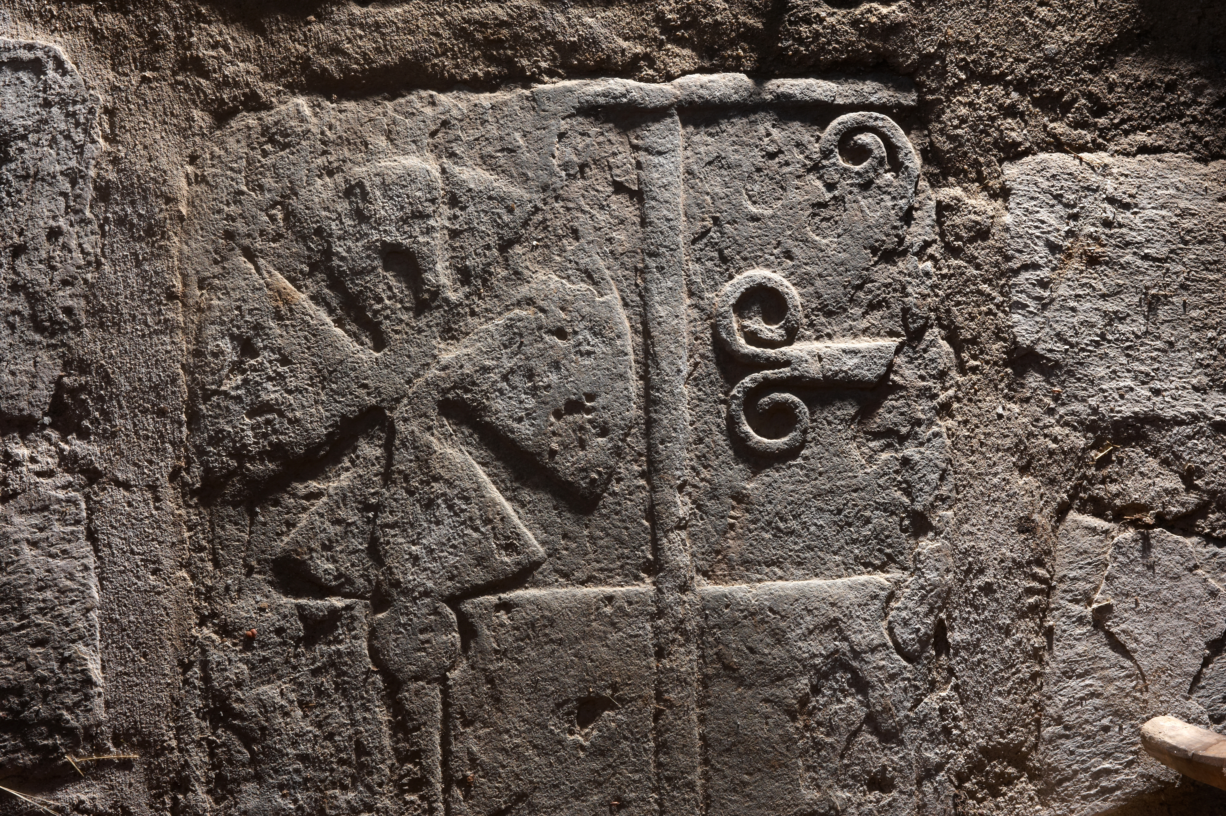 Rospez, la Ville Blanche : chapelle Saint-André, vue intérieure, ancienne pierre tombaleImmatriculation
