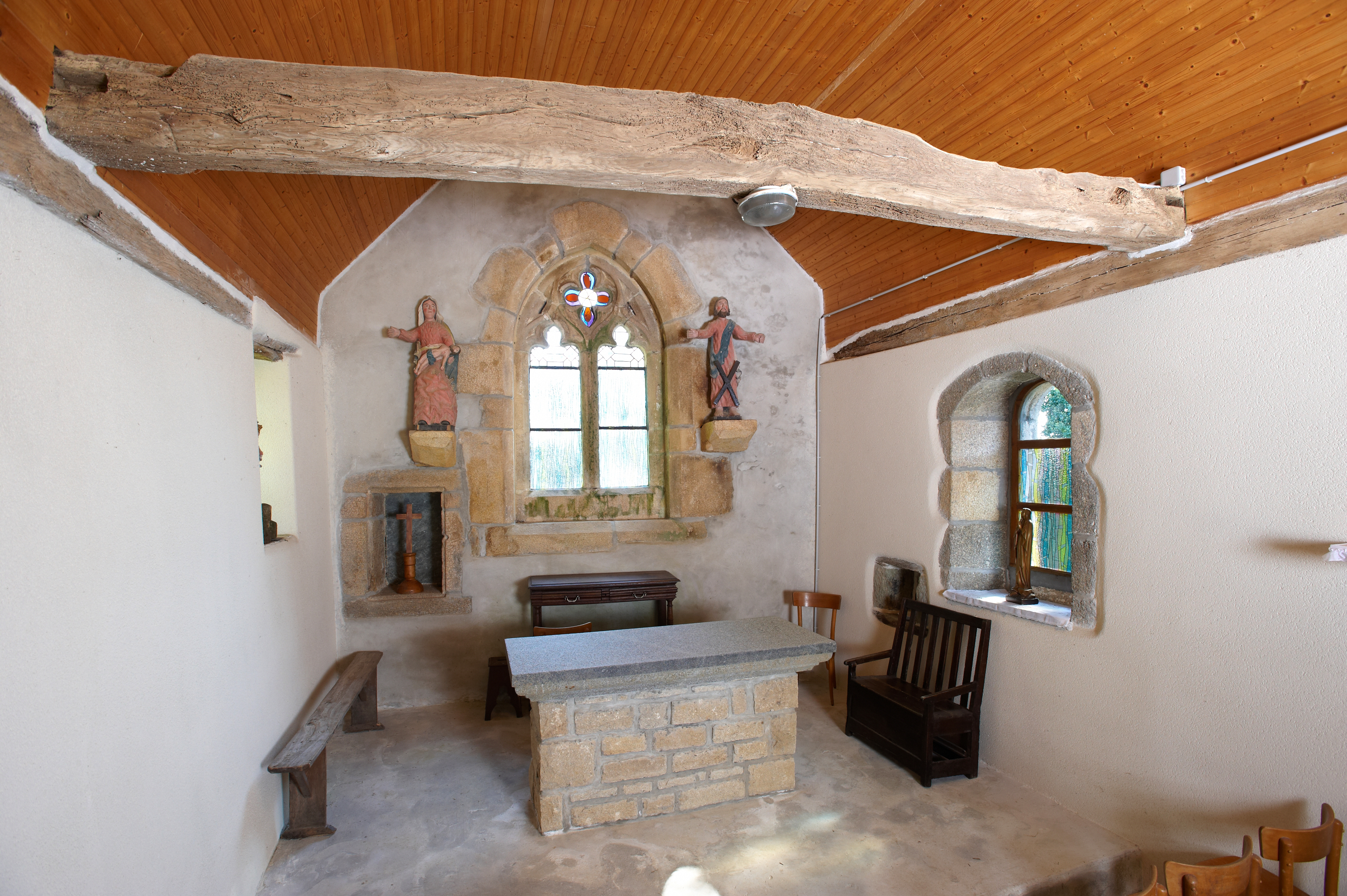 Rospez, la Ville Blanche : chapelle Saint-André, vue intérieure vers le chœur, maître-autel et maîtresse-vitreImmatriculation