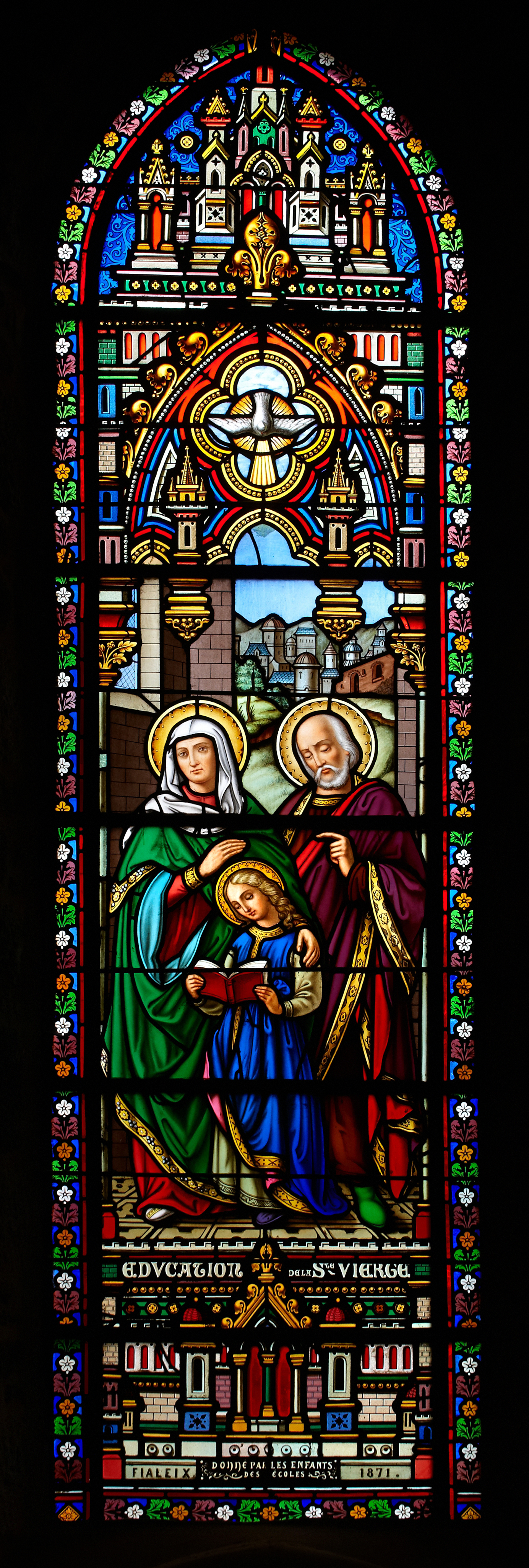 Verrière, Education de la Vierge, offerte par les enfants. Fialex, 1871Immatriculation