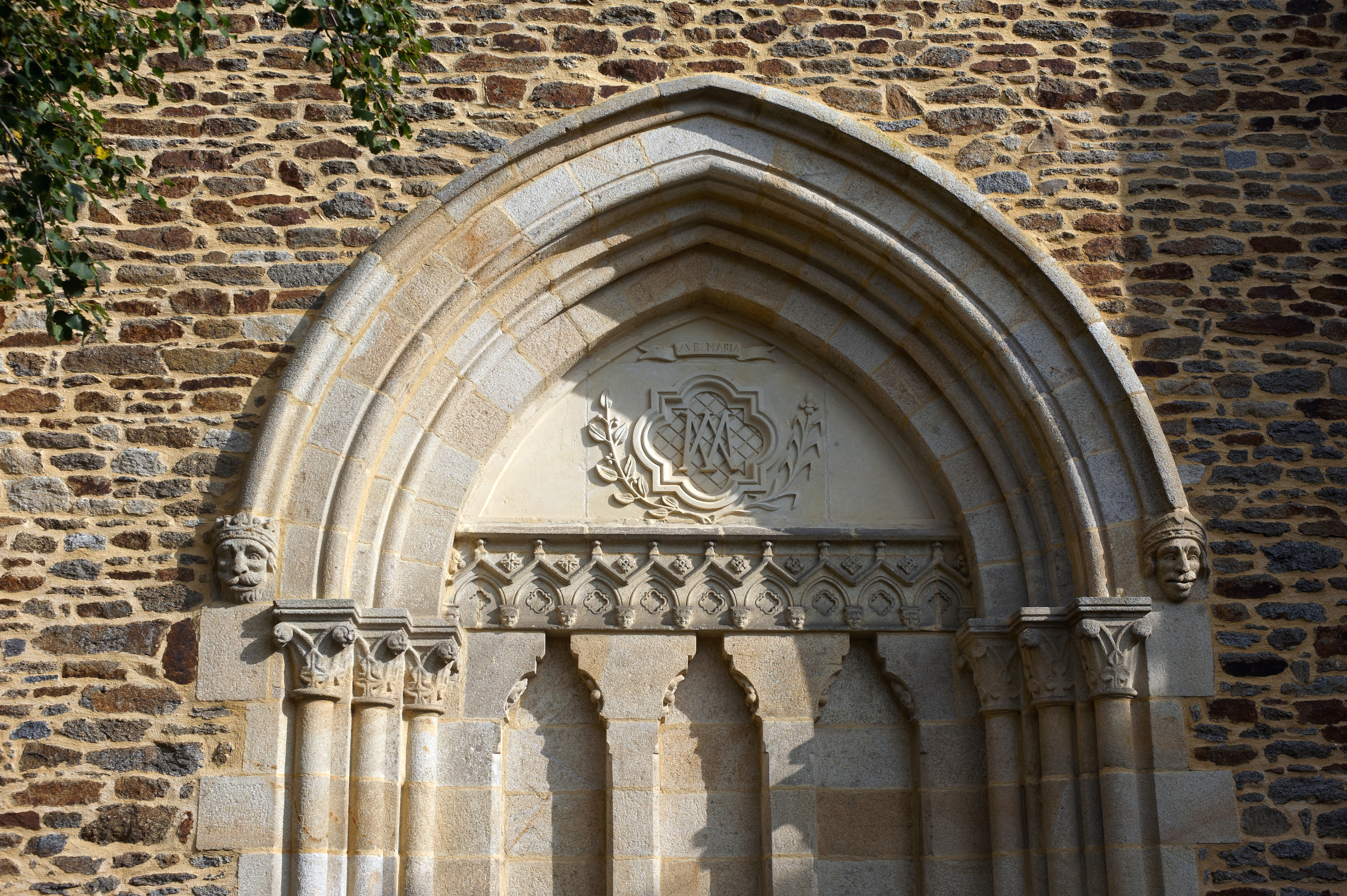 Extérieur, ancienne porte du transept, dédiée à la Vierge Marie : détailImmatriculation