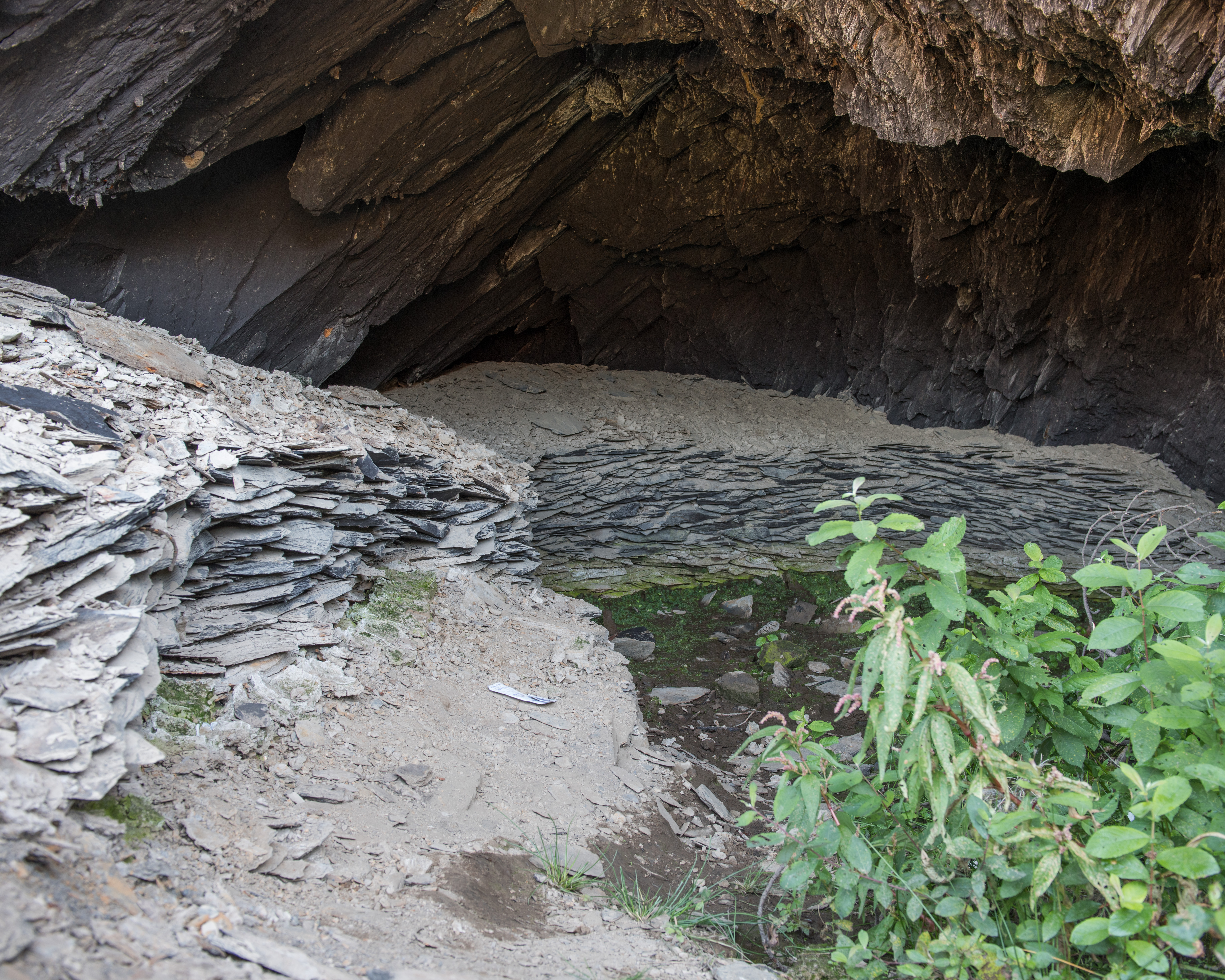 Carrière située entre Baravl et Kermadec : entrée des galeries, débris d'ardoiseImmatriculation