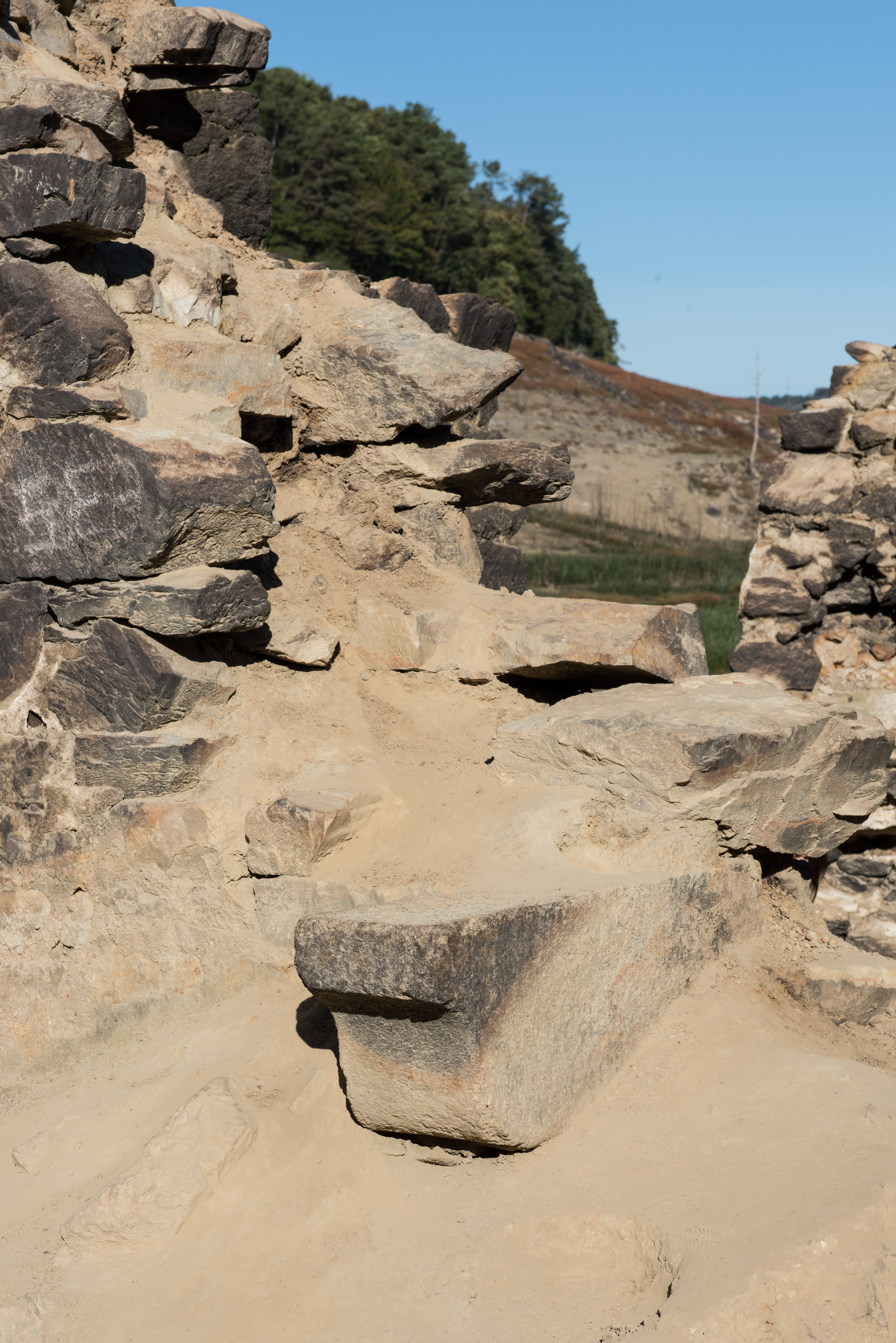 Site écluse de Caurel, maison éclusière, vestige de corbelet de cheminée, pignon ouestImmatriculation