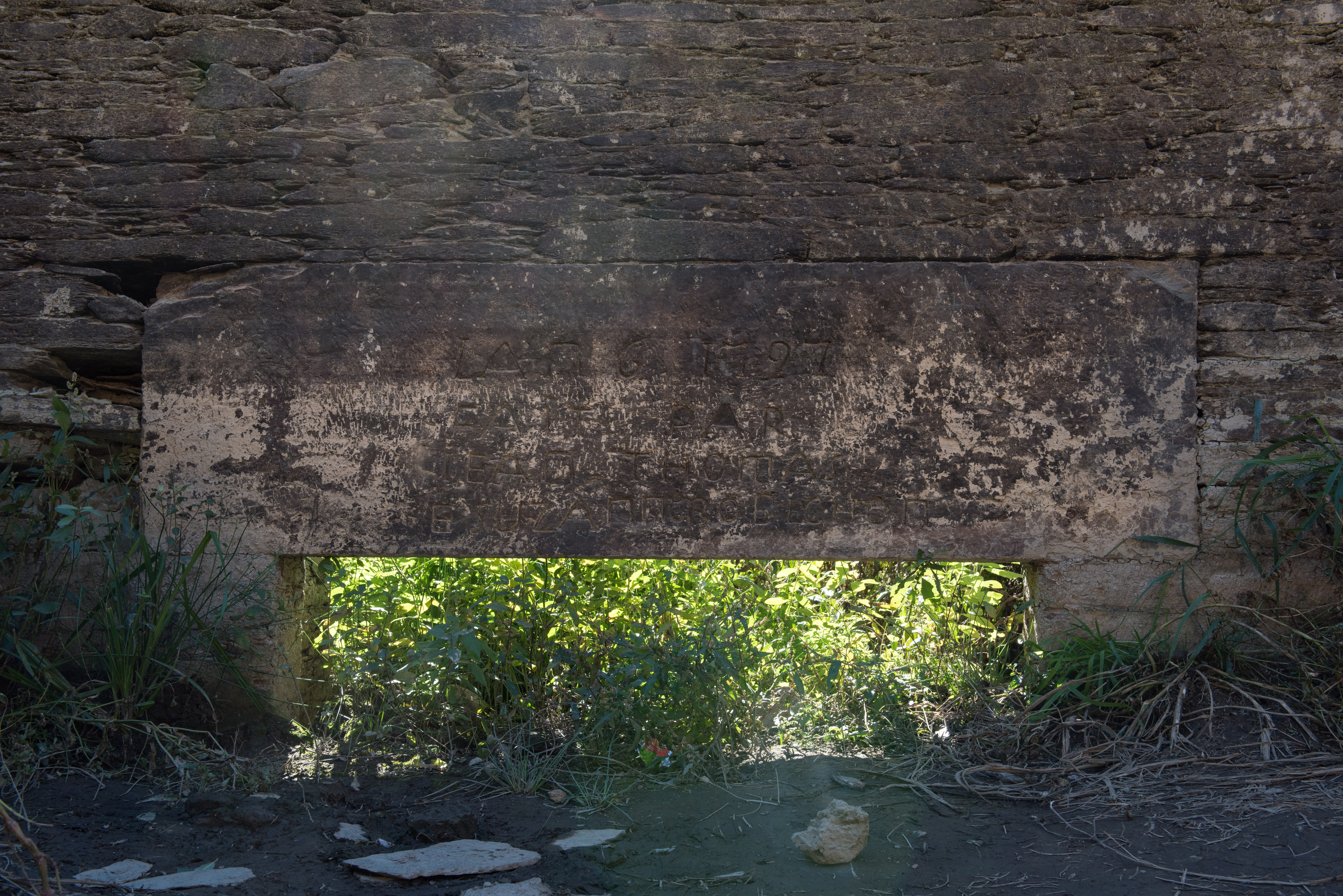 Site d'écluse de Kermadec, maison éclusière et ancien café, linteau avec inscriptionImmatriculation