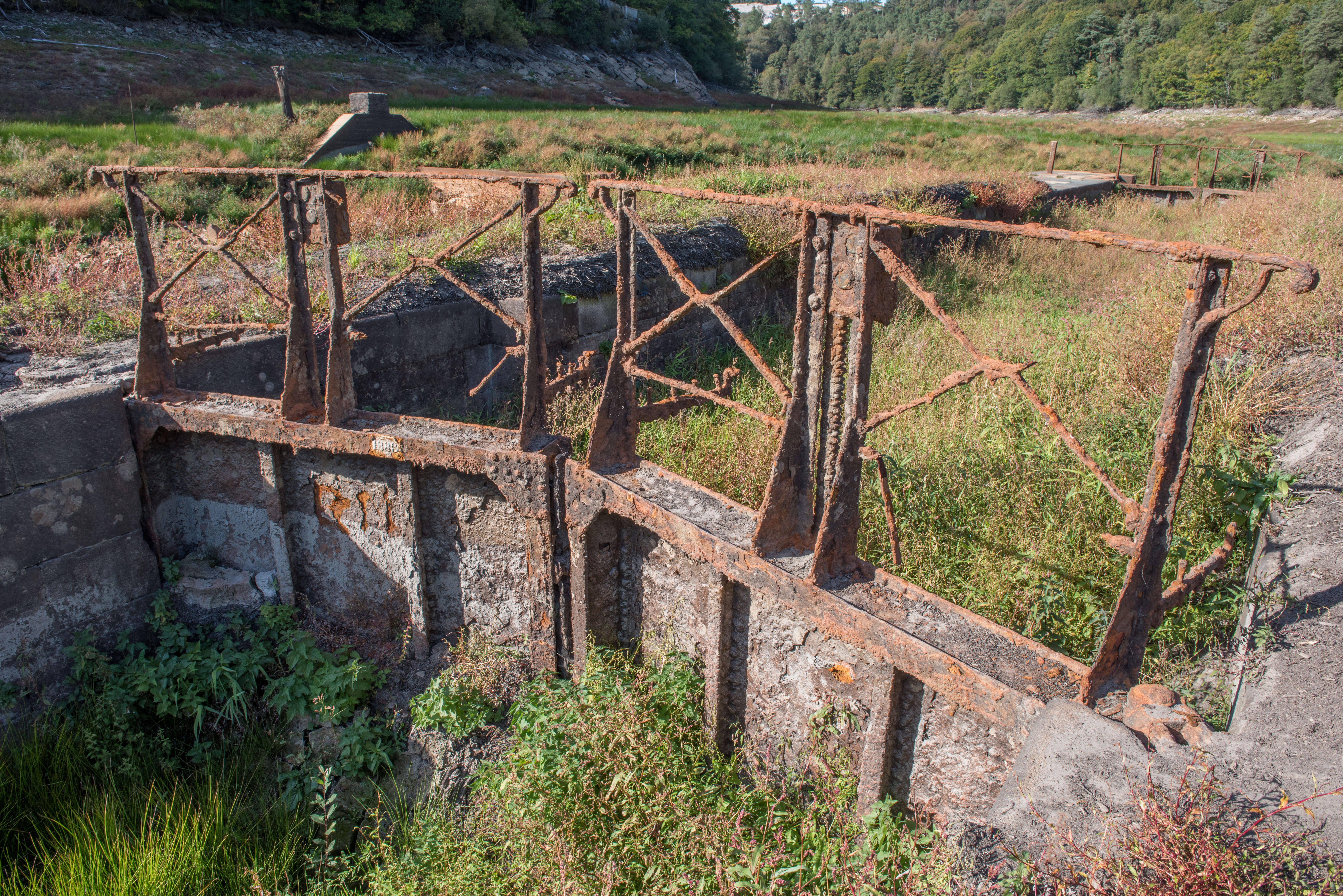 Site d'écluse de Toul er Lan, vantaux, garde-corps, crémaillère, vue rapprochéeImmatriculation