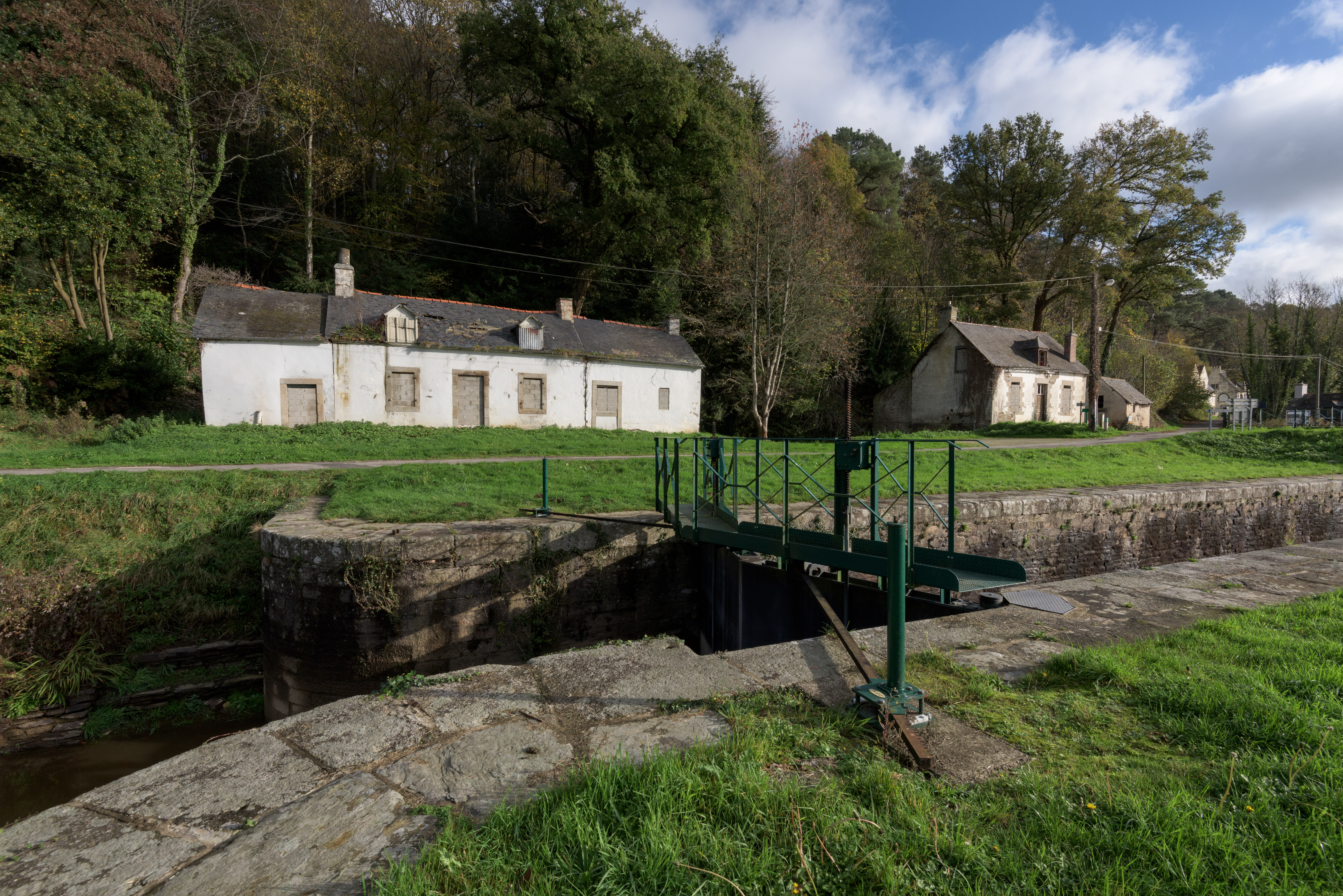 Site de l'écluse de Guerlédan, Trévejean ; Botplançon (écluse n° 119 du Canal de Nantes à Brest, située à Mûr-de-Bretagne) (Mûr-de-Bretagne fusionnée en Guerlédan en 2017)