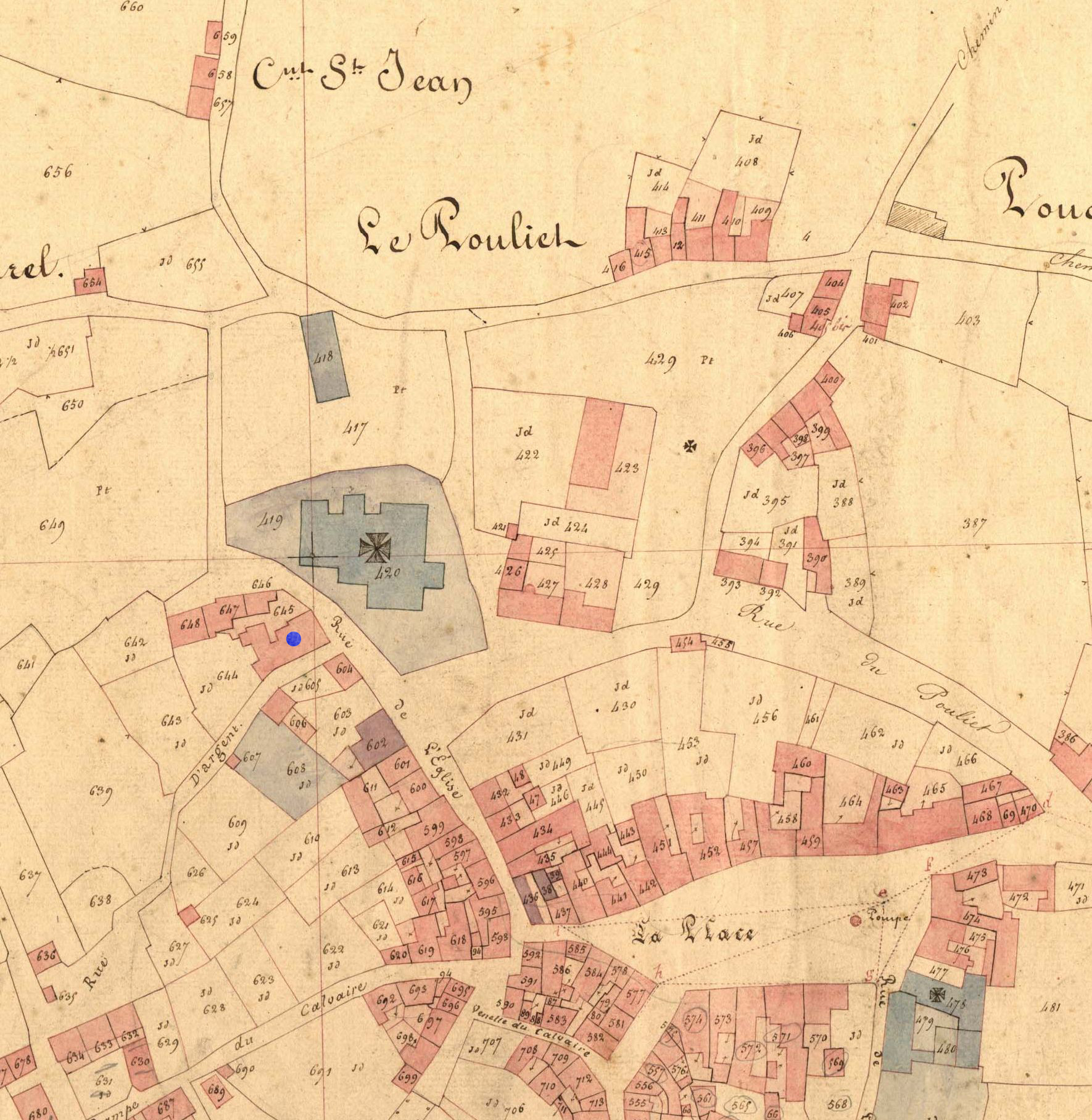Localisation du n°7 place de l'église. Extrait du cadastre ancien de 1836 (A.D. 22, sous-série 3P)Immatriculation