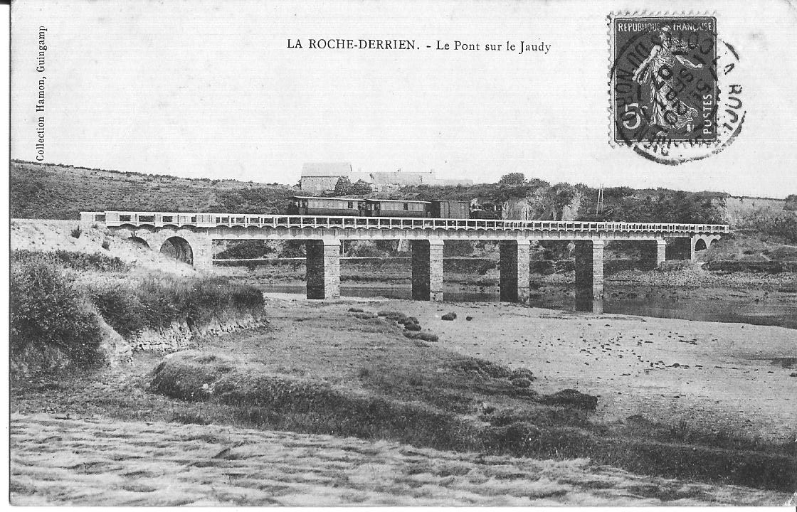 Le viaduc du chemin de fer qui enjambe le Jaudy. Carte postale ancienne (collection particulière Georges Le Fell)Immatriculation