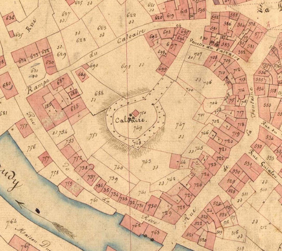Oratoire du calvaire à l'emplacement du château en 1836. Extrait du cadastre ancien (A.D. 22, série 3 P)Immatriculation