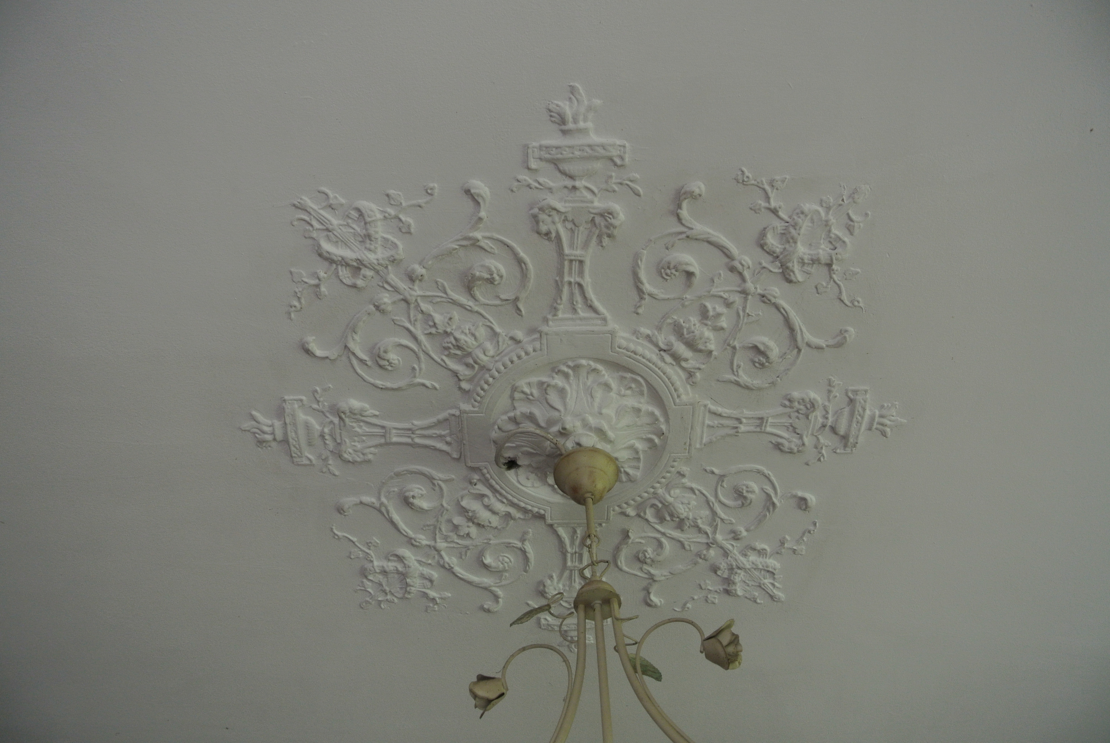 7 place de l'église. Maison du 15e siècle dont la façade est refaite en 1830. Détail d'une rosace de plafond, 2e moitié 19e siècleImmatriculation
