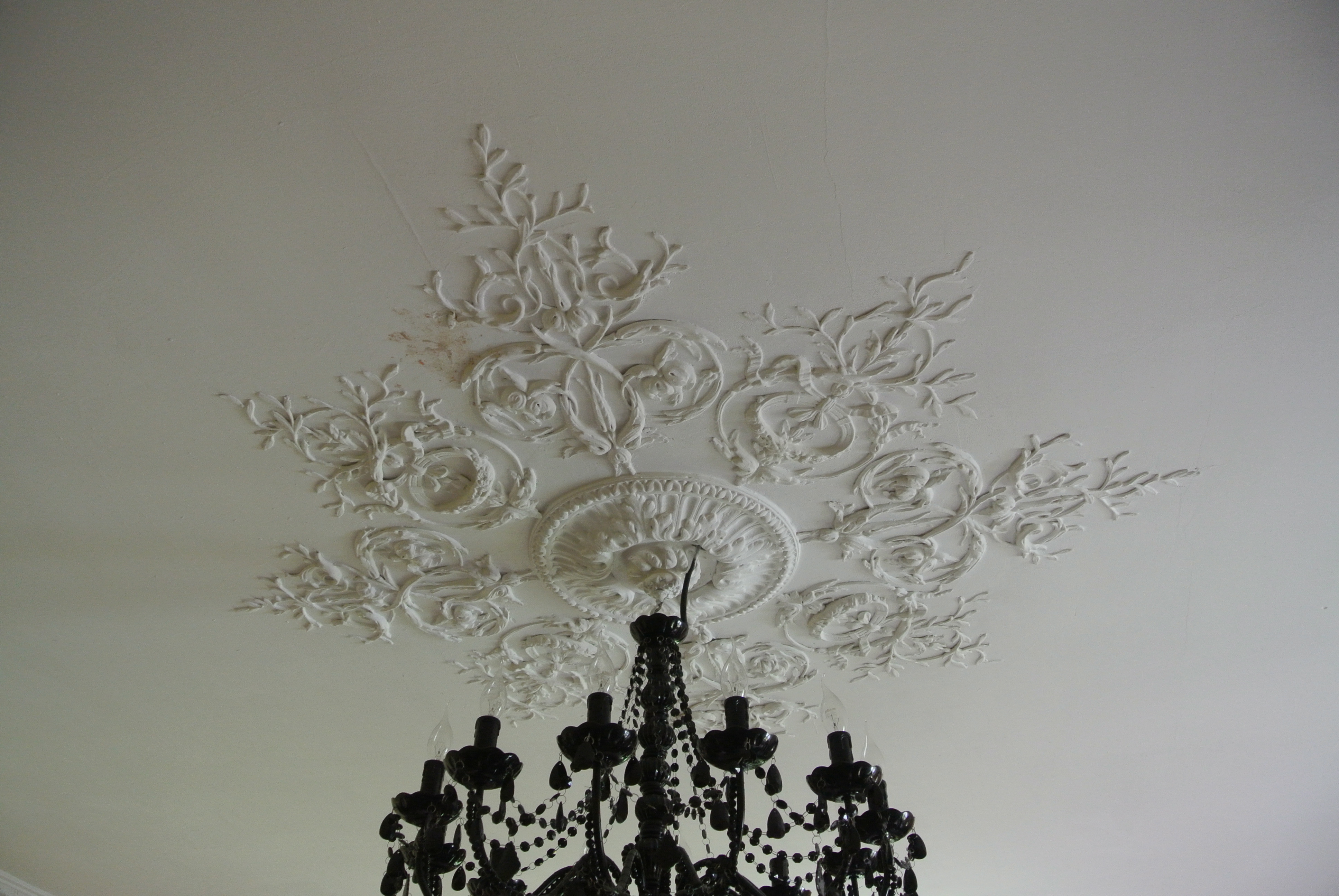 7 place de l'église. Maison du 15e siècle dont la façade est refaite en 1830. Détail d'une rosace de plafond, 2e moitié 19e siècleImmatriculation