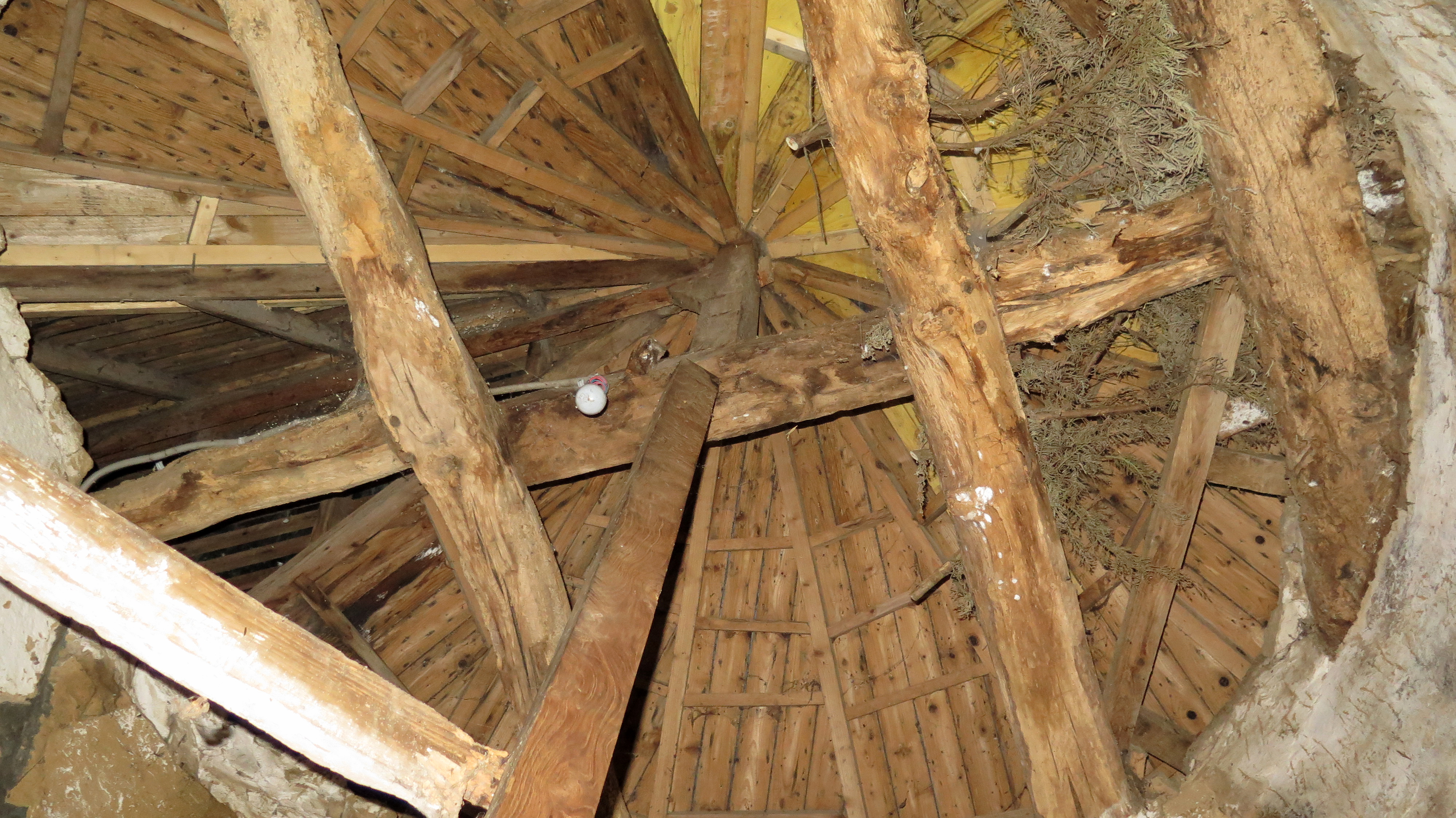 Logis, détail de l'enrayure de la tour (terme de charpentier : se dit des pièces de bois qui aboutissent à une espèce de centre et s'éloignent en forme de rayons, soit dans les planchers plats, soit dans les combles...)Immatriculation