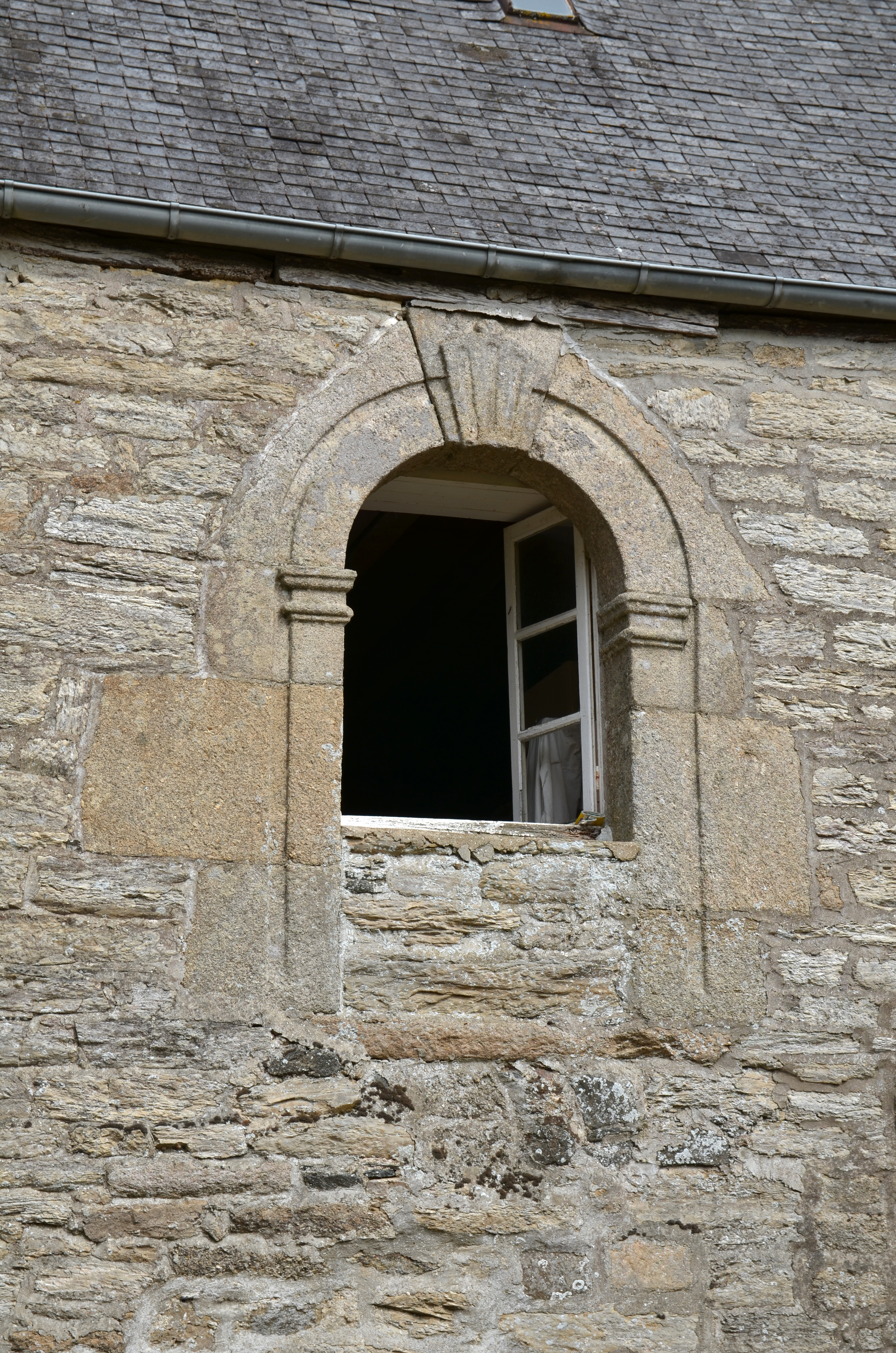 Trémel, Kerdudavel : manoir, élévation antérieure orientée vers le sud-est, détail de la porte haute. Elle est ornée d'un claveau saillant à cannelureImmatriculation