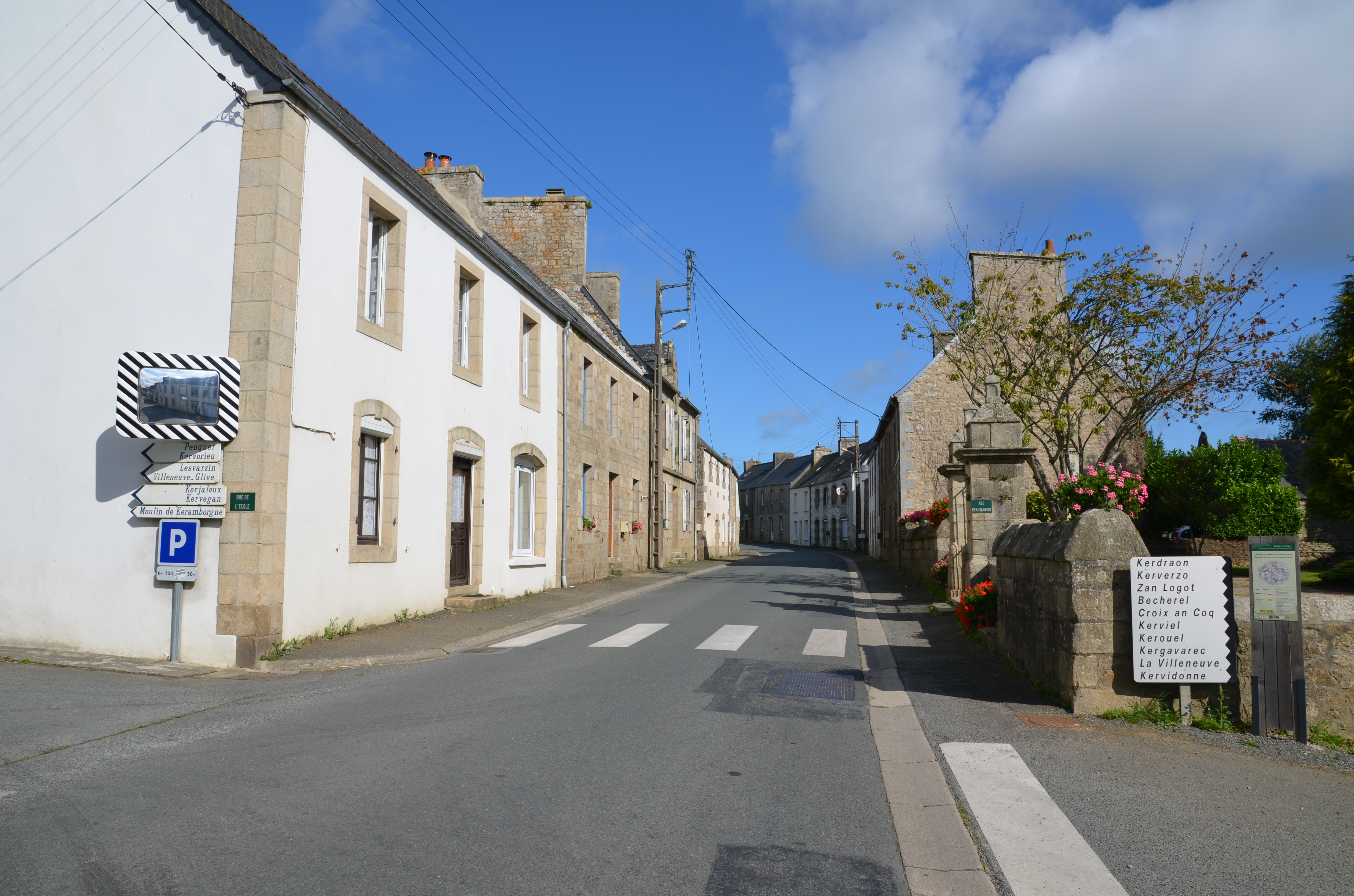 Trémel, le bourg : vue générale de la rue Beaumanoir depuis le sudImmatriculation