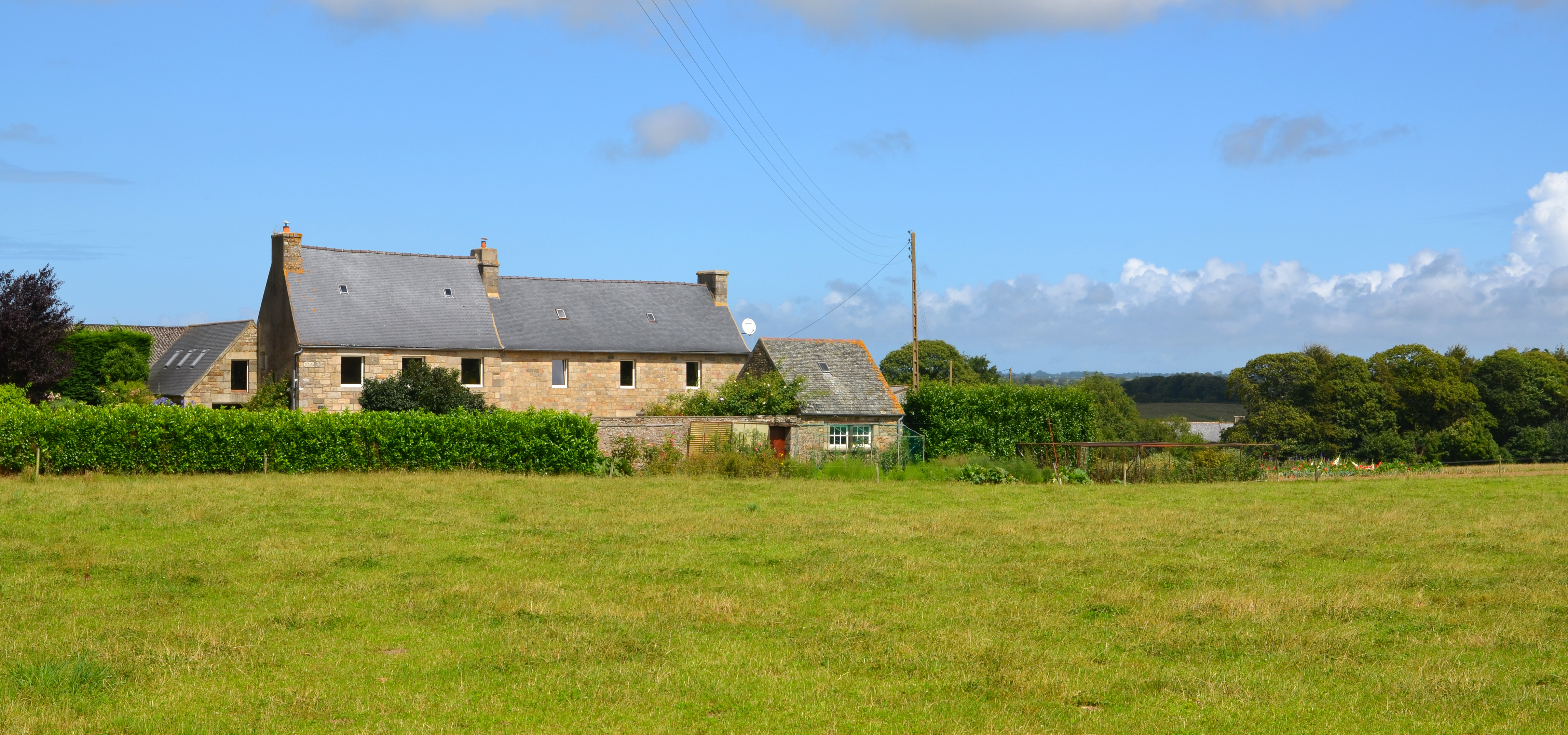 Trémel, La Villeneuve : ferme, vue générale depuis le sud. Cette ferme dépendait sans doute du manoir de Kervidonné au nordImmatriculation