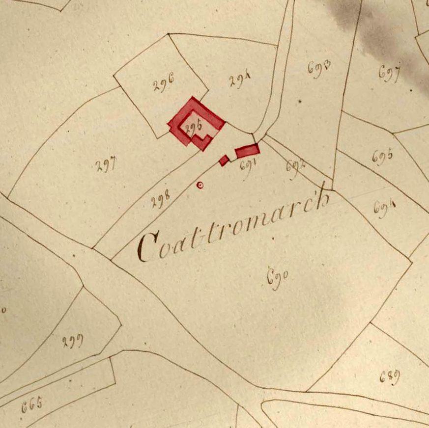Extrait du cadastre ancien de la commune de Trémel, 1814 : Coat Tromarc'h (logis, métairie et colombier)Immatriculation