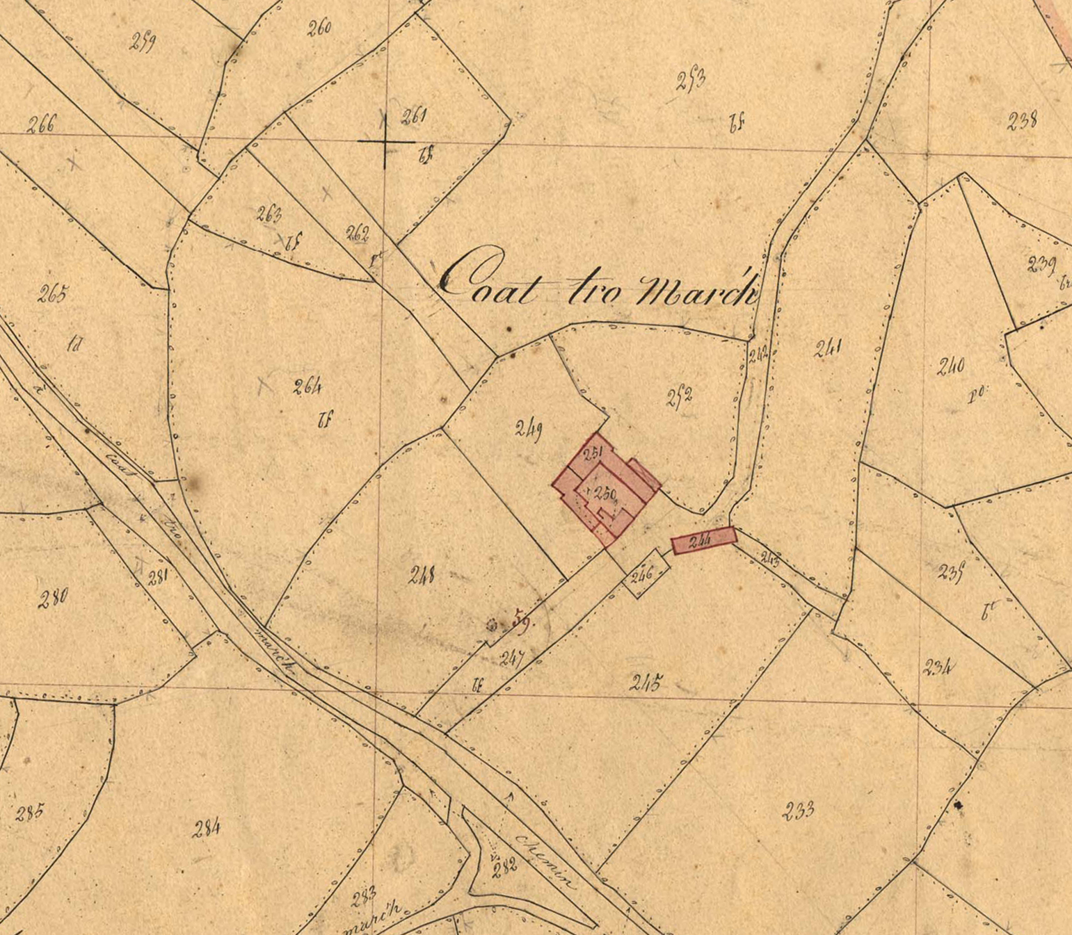 Extrait du cadastre ancien de la commune de Trémel, 1814 : Coat Tromarc'h (logis et métairie)Immatriculation