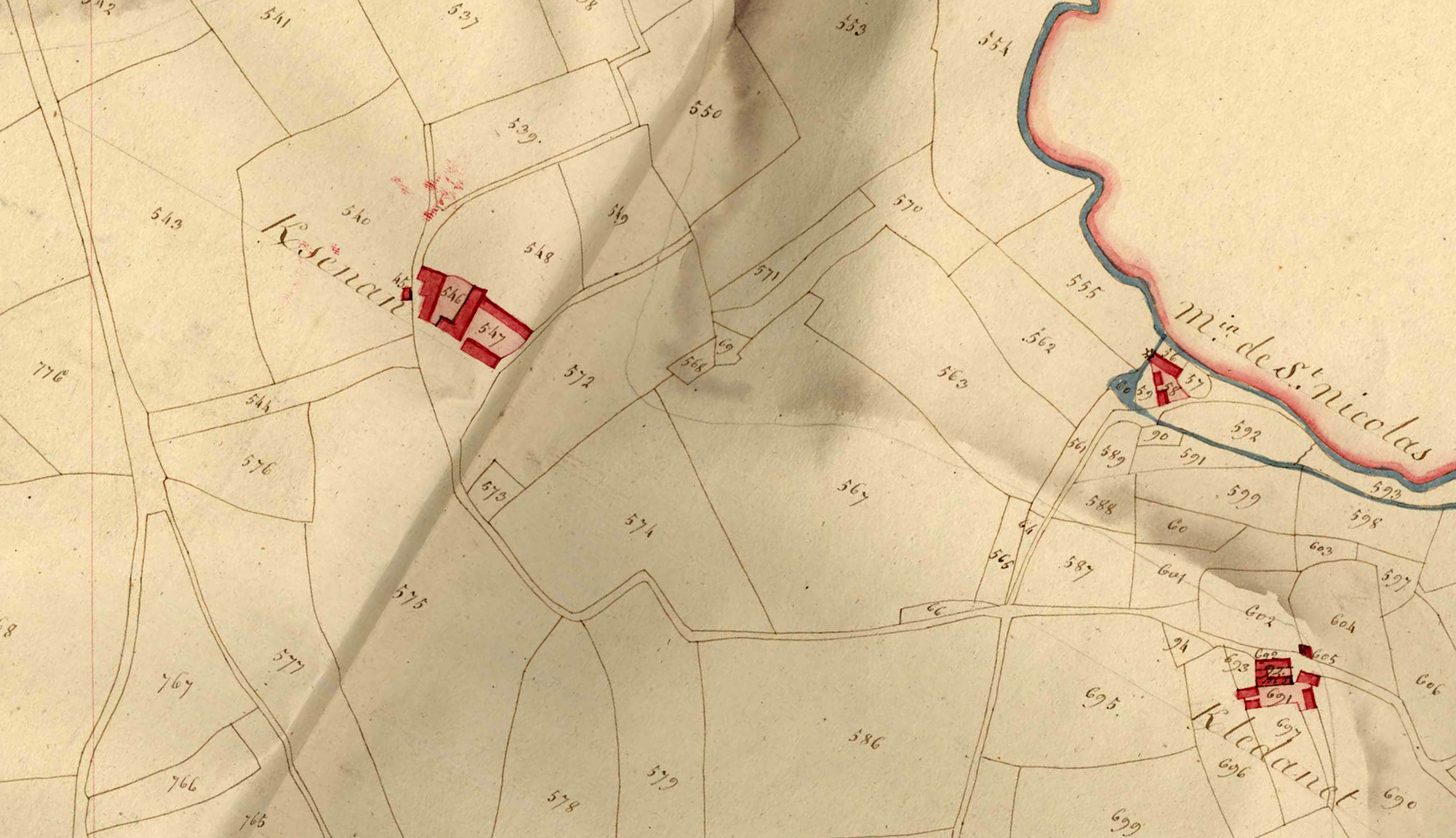Extrait du cadastre ancien de la commune de Trémel, 1814 : manoir de KersénantImmatriculation
