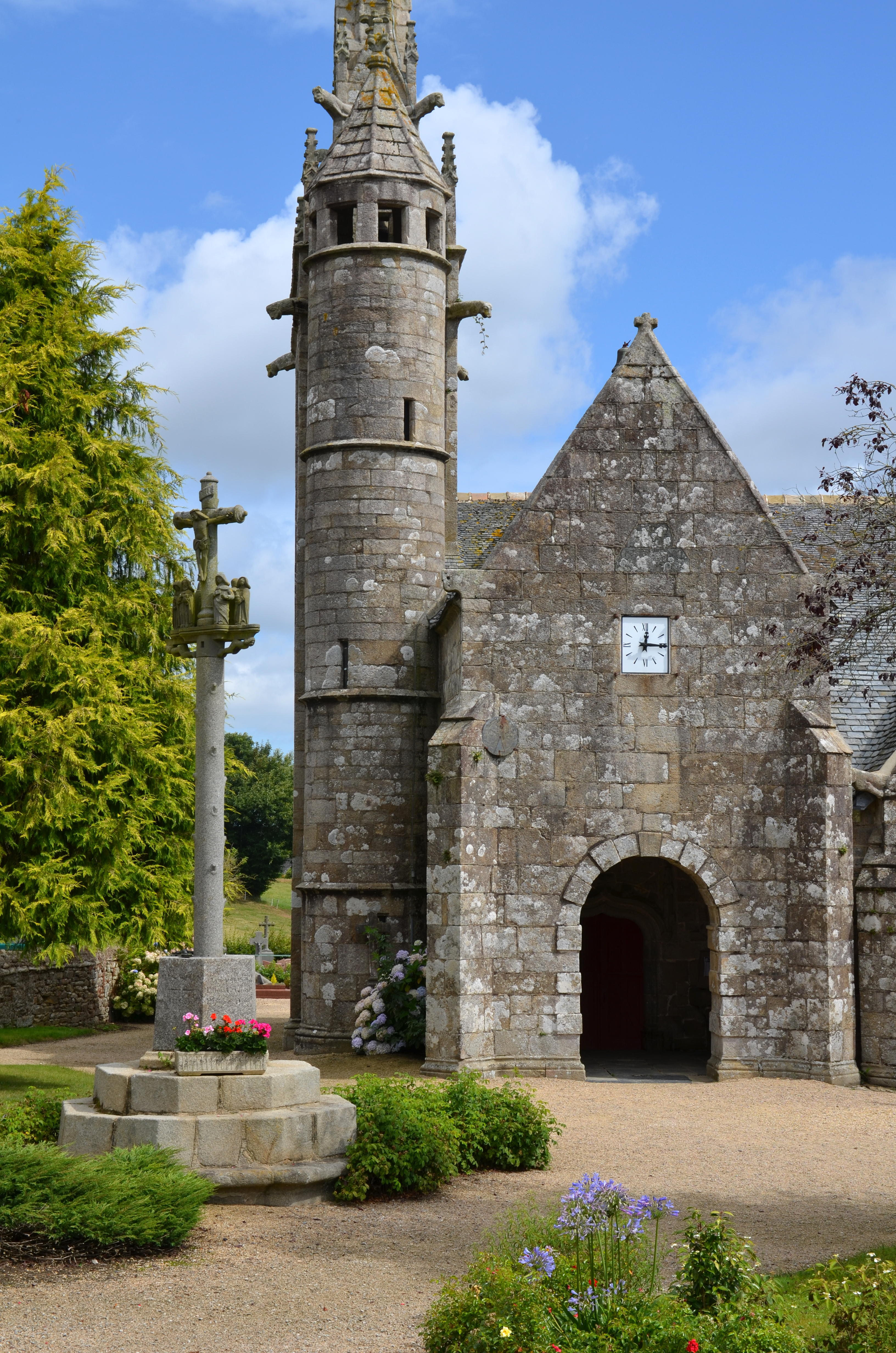 Trémel, le bourg : église paroissiale Notre-Dame, vue depuis le sud. Au premier plan : le calvaireImmatriculation